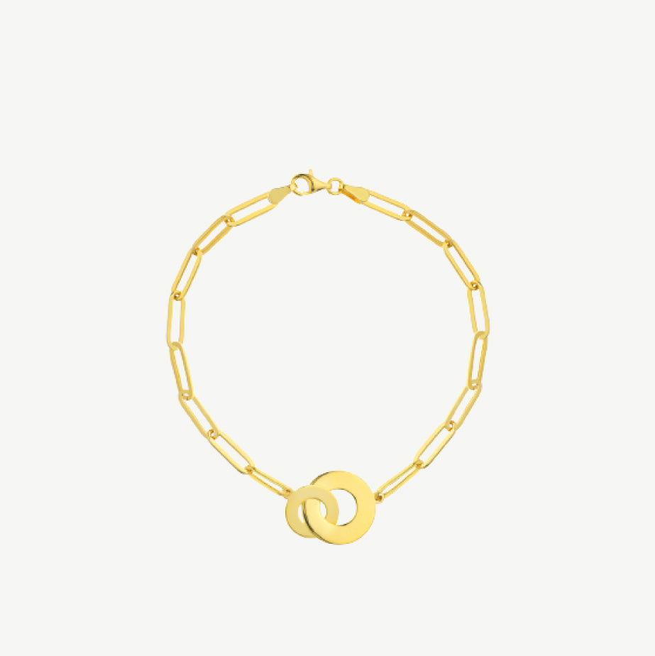 Interlocked Discs on Paper Clip Chain Bracelet