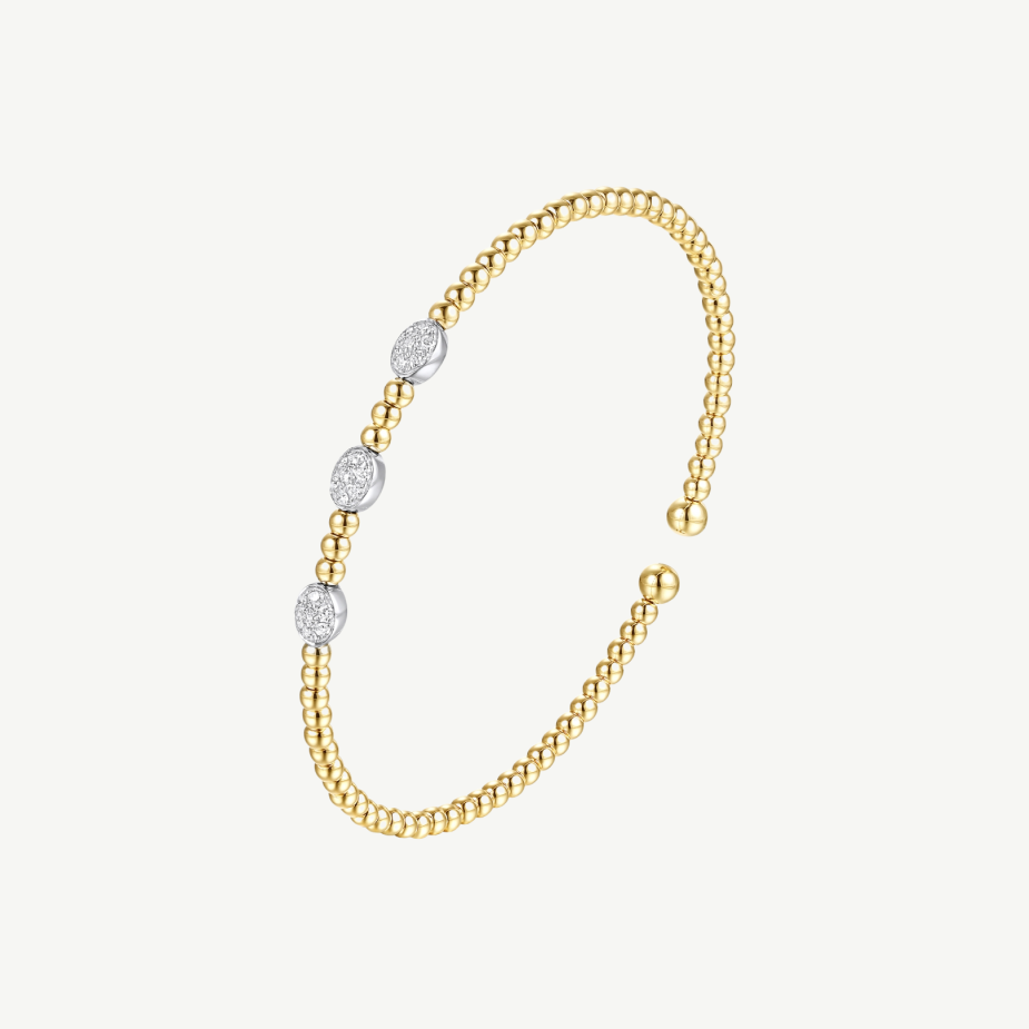 Indulge in luxury with our Pave Oval Beaded Cuff. Adorned with 21 dazzling diamonds, totaling...