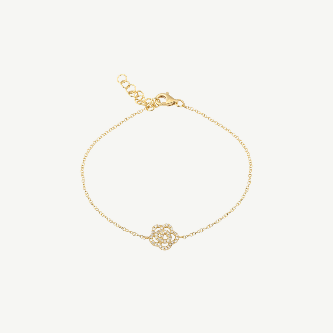 Crafted with 14k white gold and adorned with a delicate camellia flower design, this bracelet...