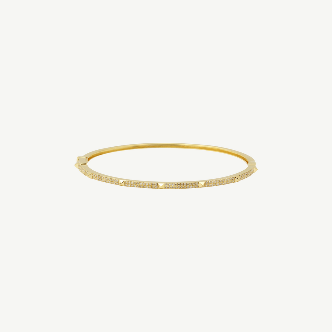 Embrace luxury with our exquisite Diamond Pyramid Bangle. Crafted from 14k yellow gold, this bangle...