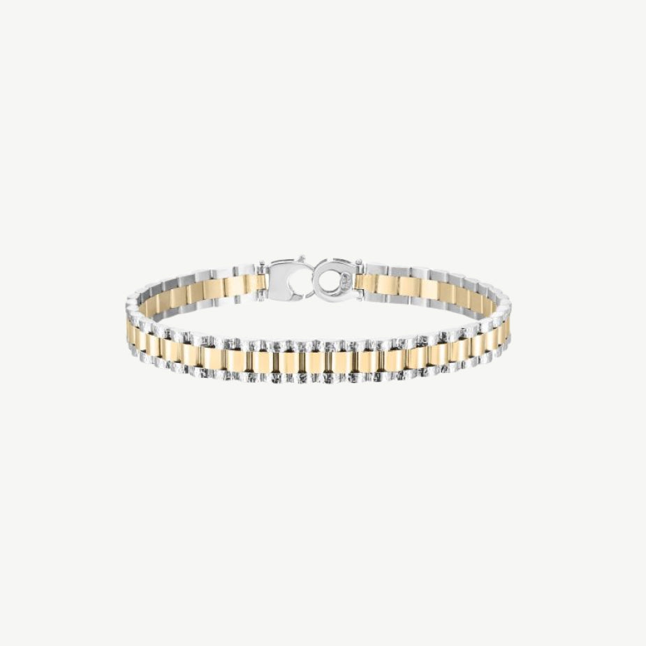 This two-tone railroad bracelet is a must-have for any man's jewelry collection. Crafted with solid...