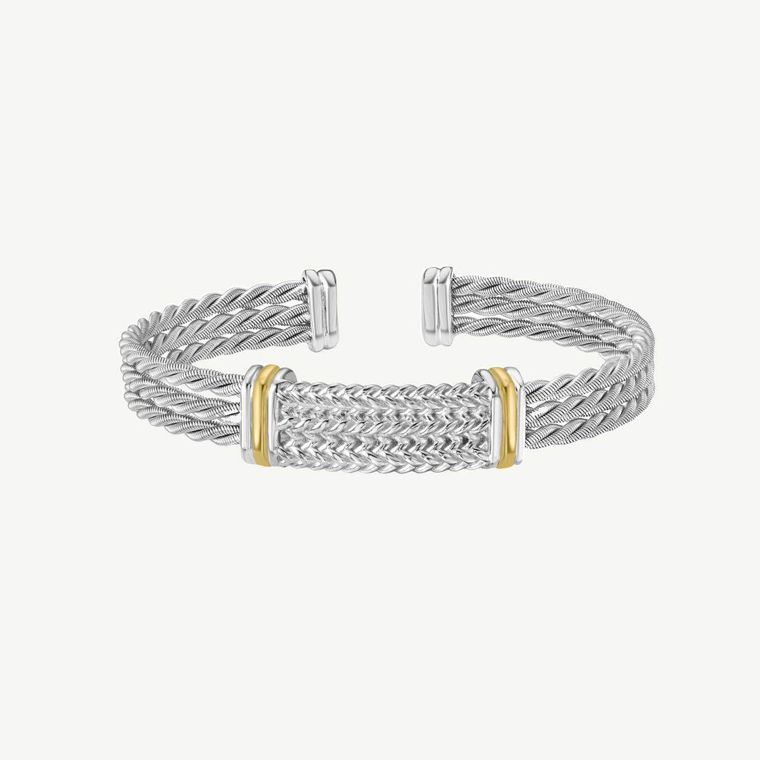 Elevate your style with our Men's Tight Braided Cuff Bracelet. Made with silver and 18K...
