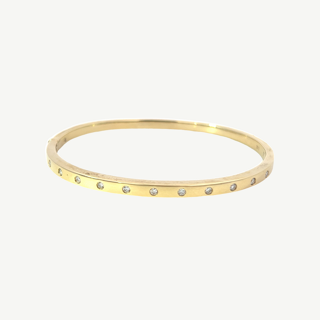 Made in14k Yellow Gold & Diamonds, This stunning bangle features round brilliant cut diamonds that...
