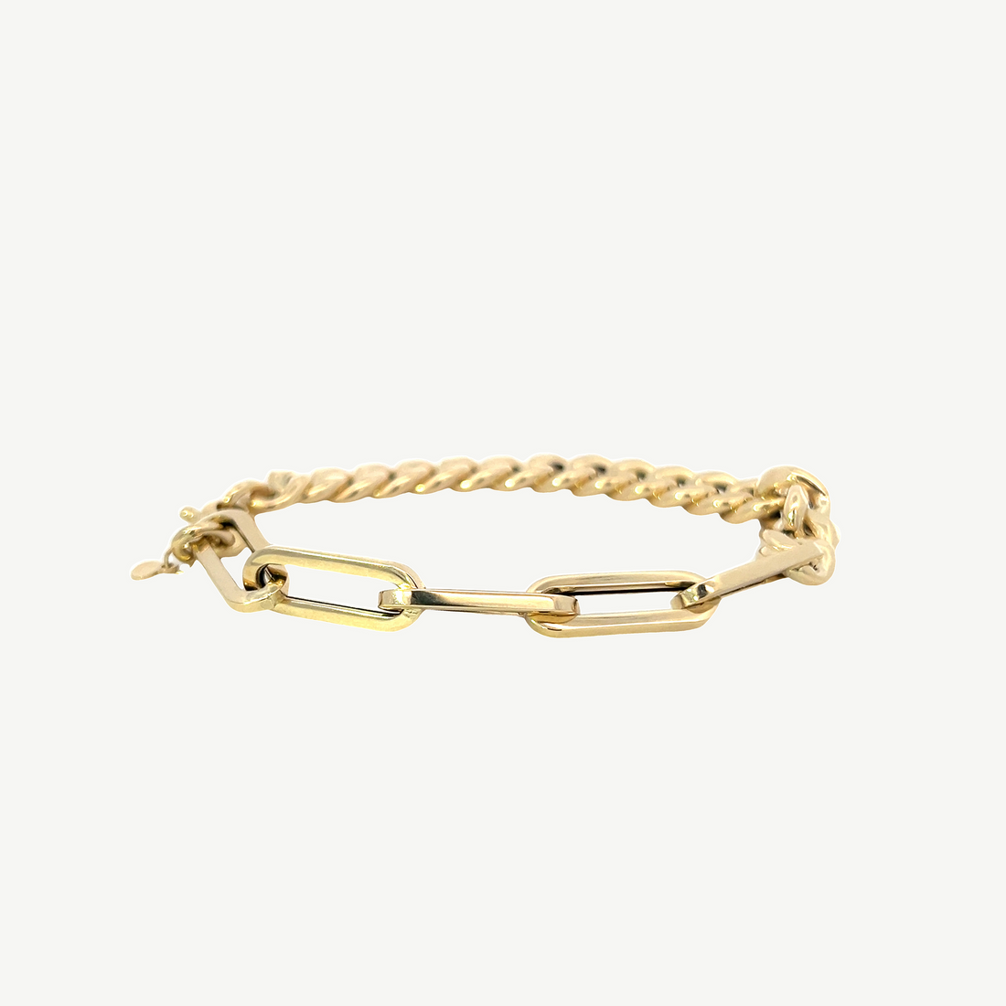 Upgrade your jewelry game with our Paperclip Cuban Bracelet! Featuring a stunning design of half...