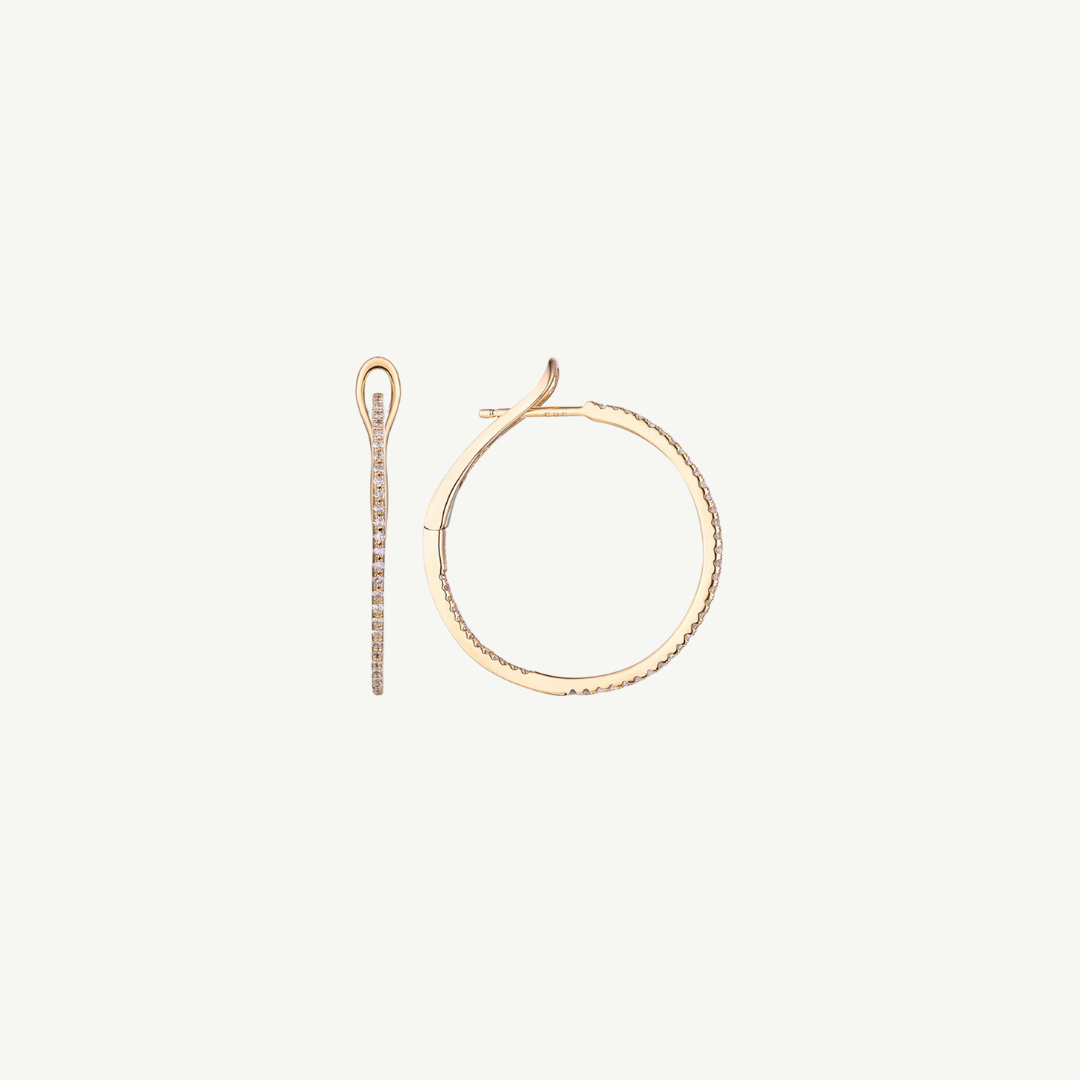 hese hoop earrings feature pave set round brilliant cut diamonds that total .24cts.