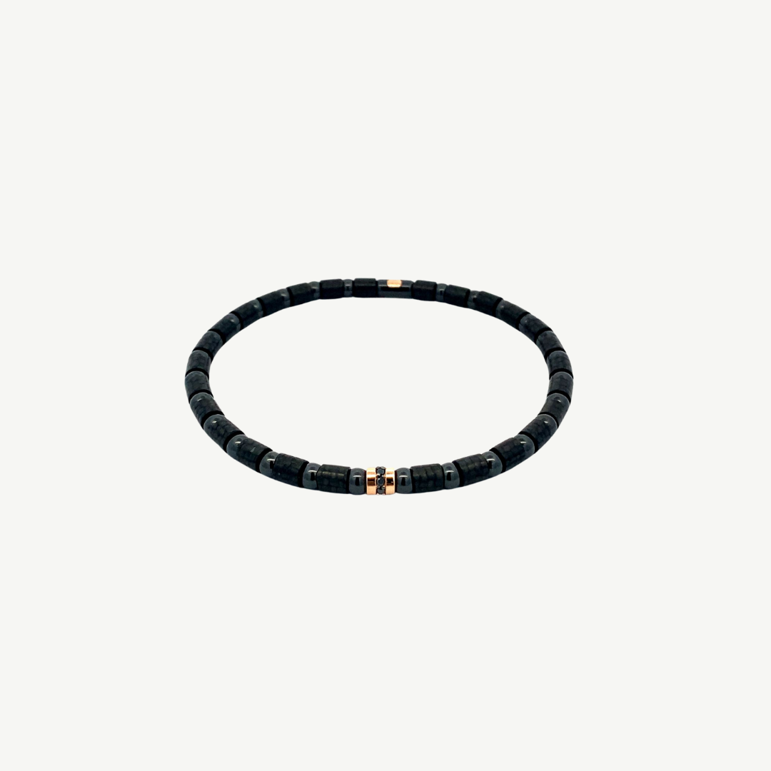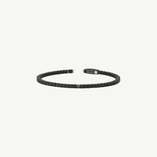 DEMEGLIO UOMO SFERA STRETCH MATTE BLACK CERAMIC BRACELET WITH 1 BLACK DIAMOND SECTION