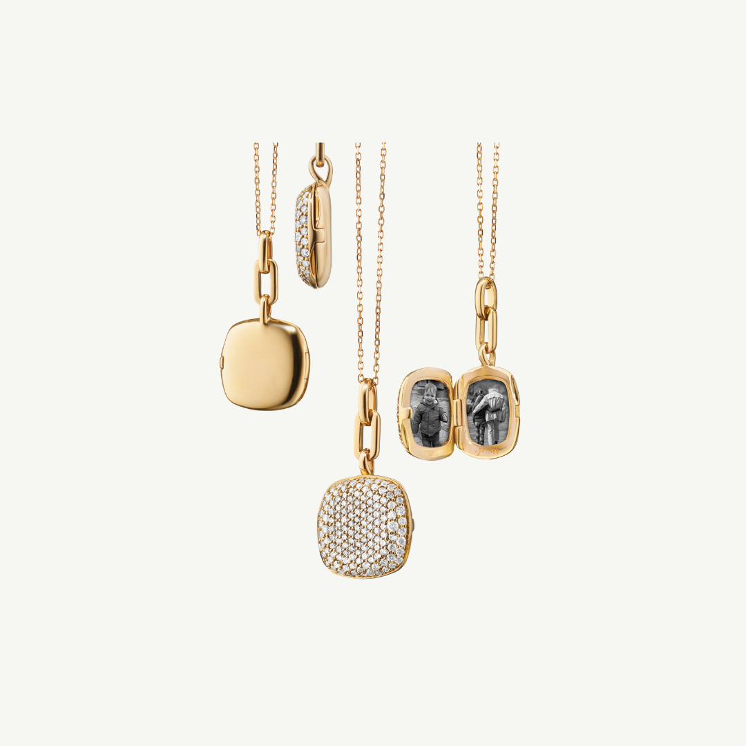 Slim "Rae" Locket Necklace with White Diamonds