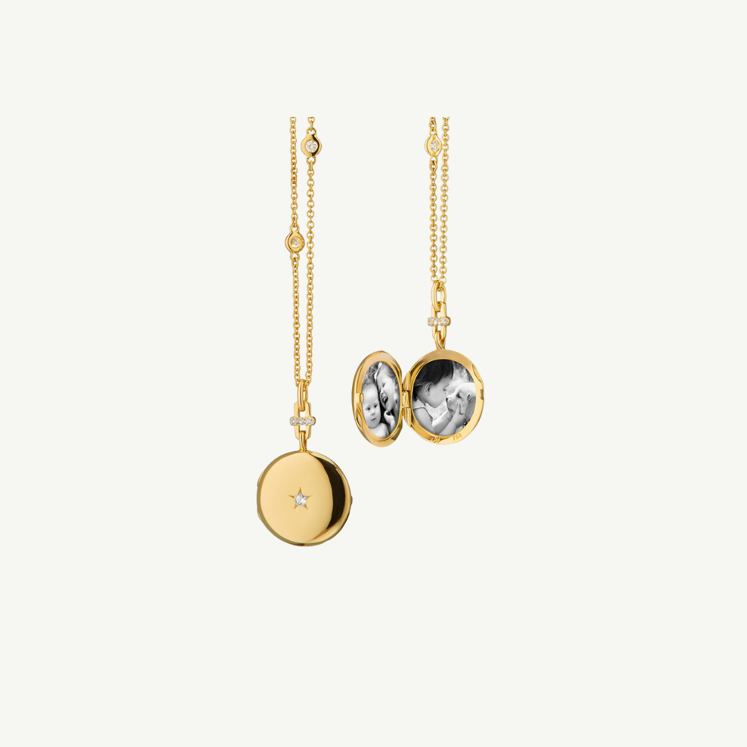 Celebrate your stories with our round twinkle star silver locket necklace. This locket features a...