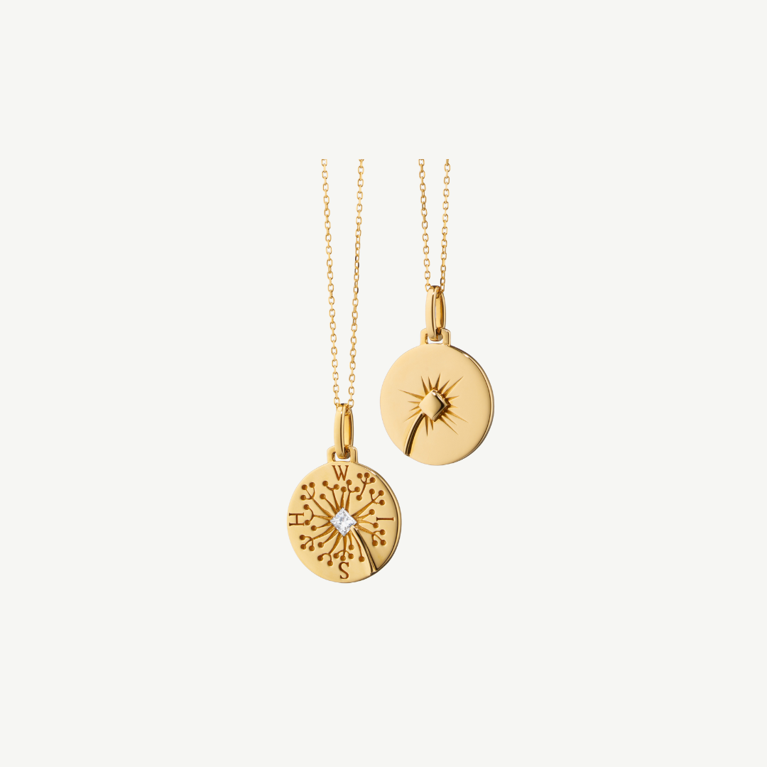 Wish" Dandelion 18K Gold Intaglio Charm with Princess Cut Diamond
