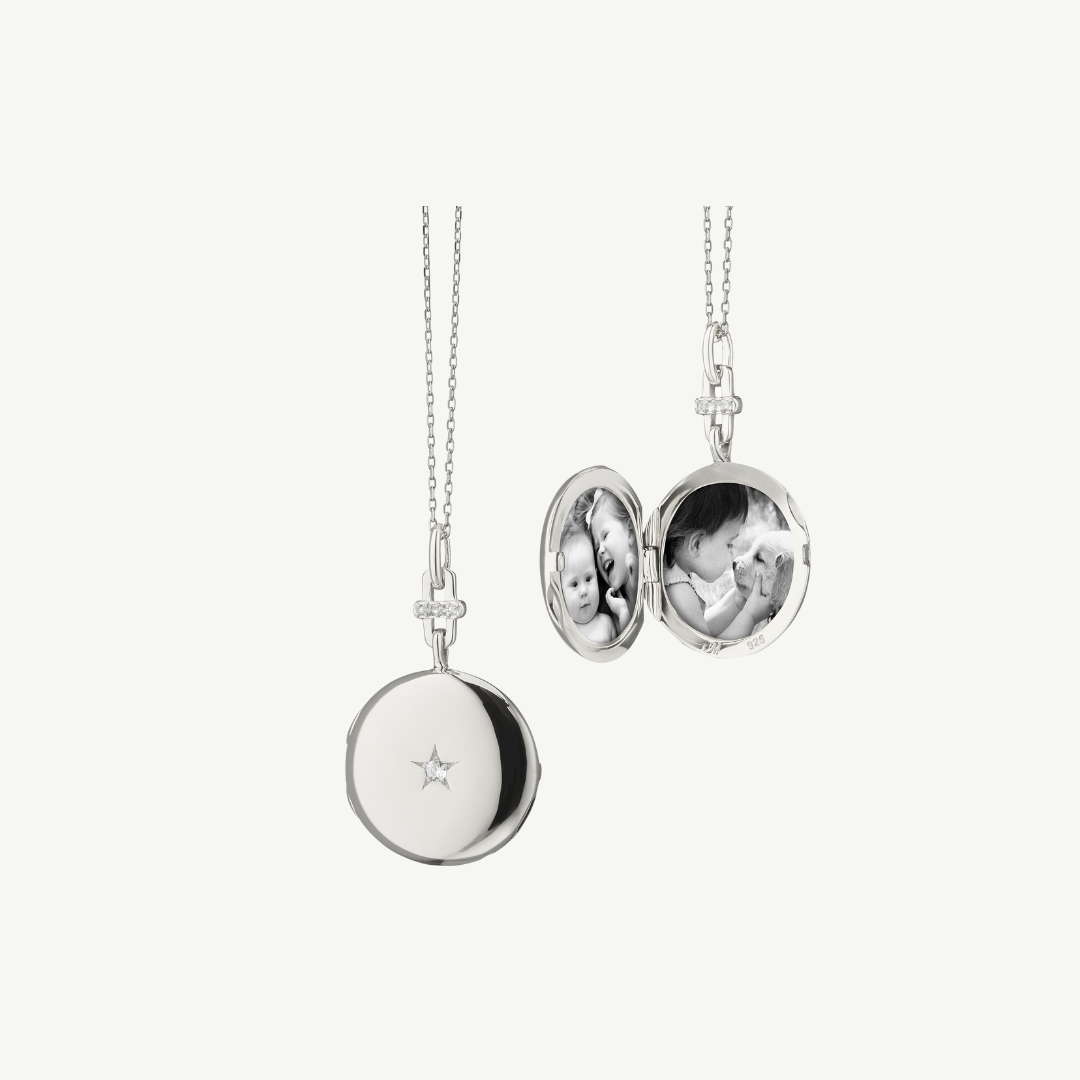 Celebrate your stories with our round twinkle star silver locket necklace. This locket features a...