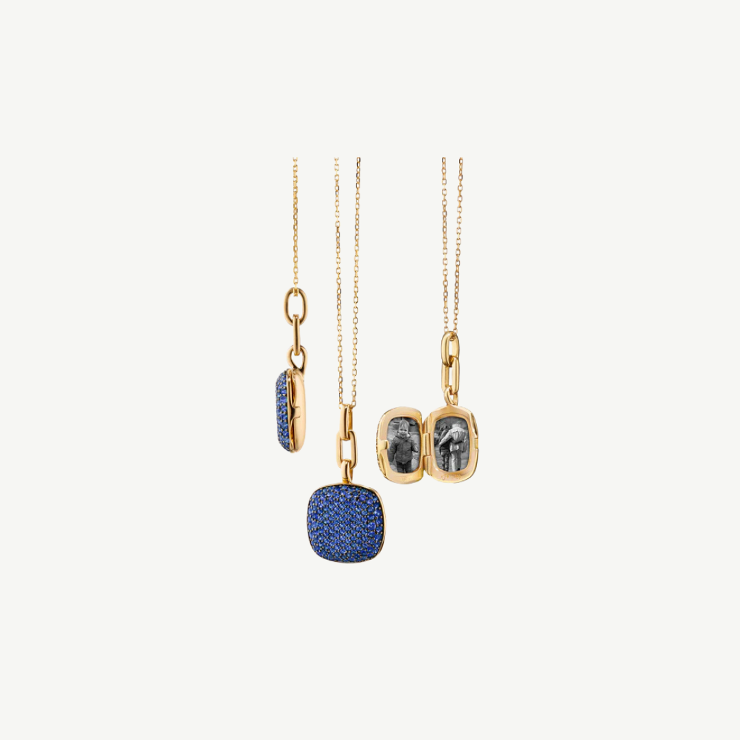 Slim "Rae" Locket Necklace with Blue Sapphires