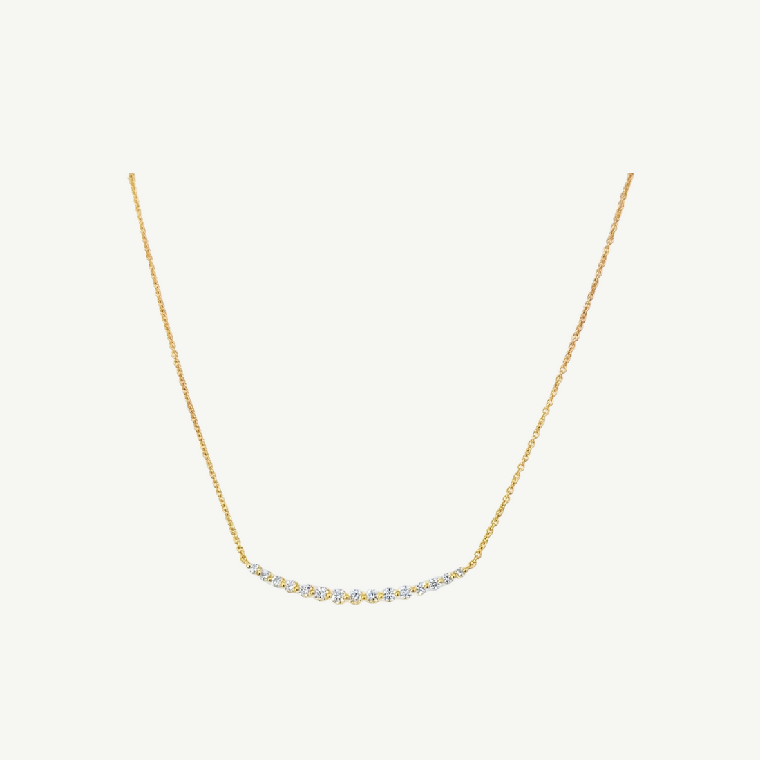 Elevate your accessories game with our exquisite 14K Yellow Gold adjustable Diamond Curved Bar Necklace....