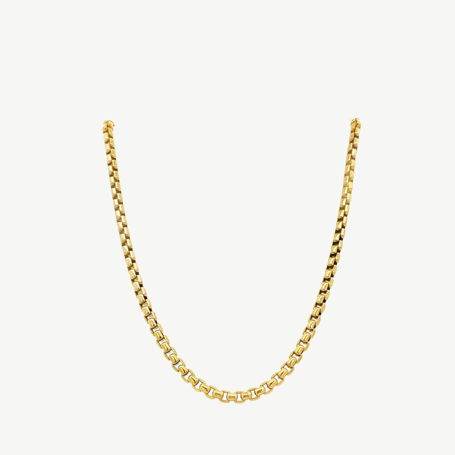 Make a statement with this lustrous gold box chain necklace that exudes luxury and class....