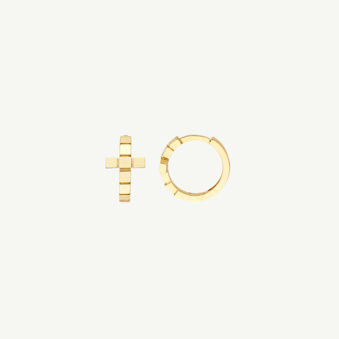 Stop and stare at these segmented cross mini hoop earrings–they're hard to miss.