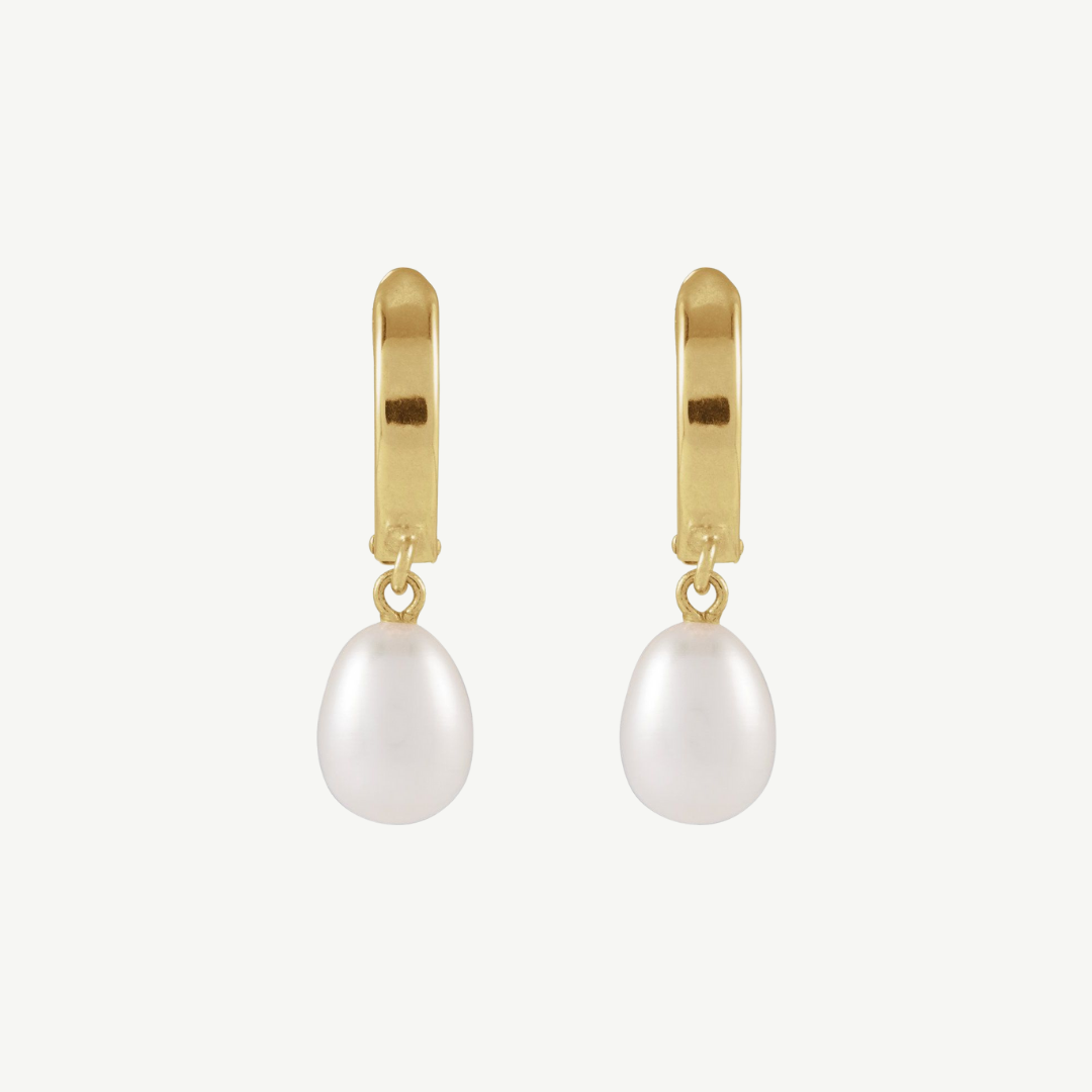 Cultured White Freshwater Pearl Hoop Earrings