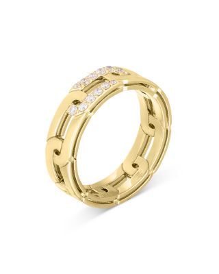 18K Yellow Gold Navarra Pavé Lock Chain Ring – 0.15 CTW