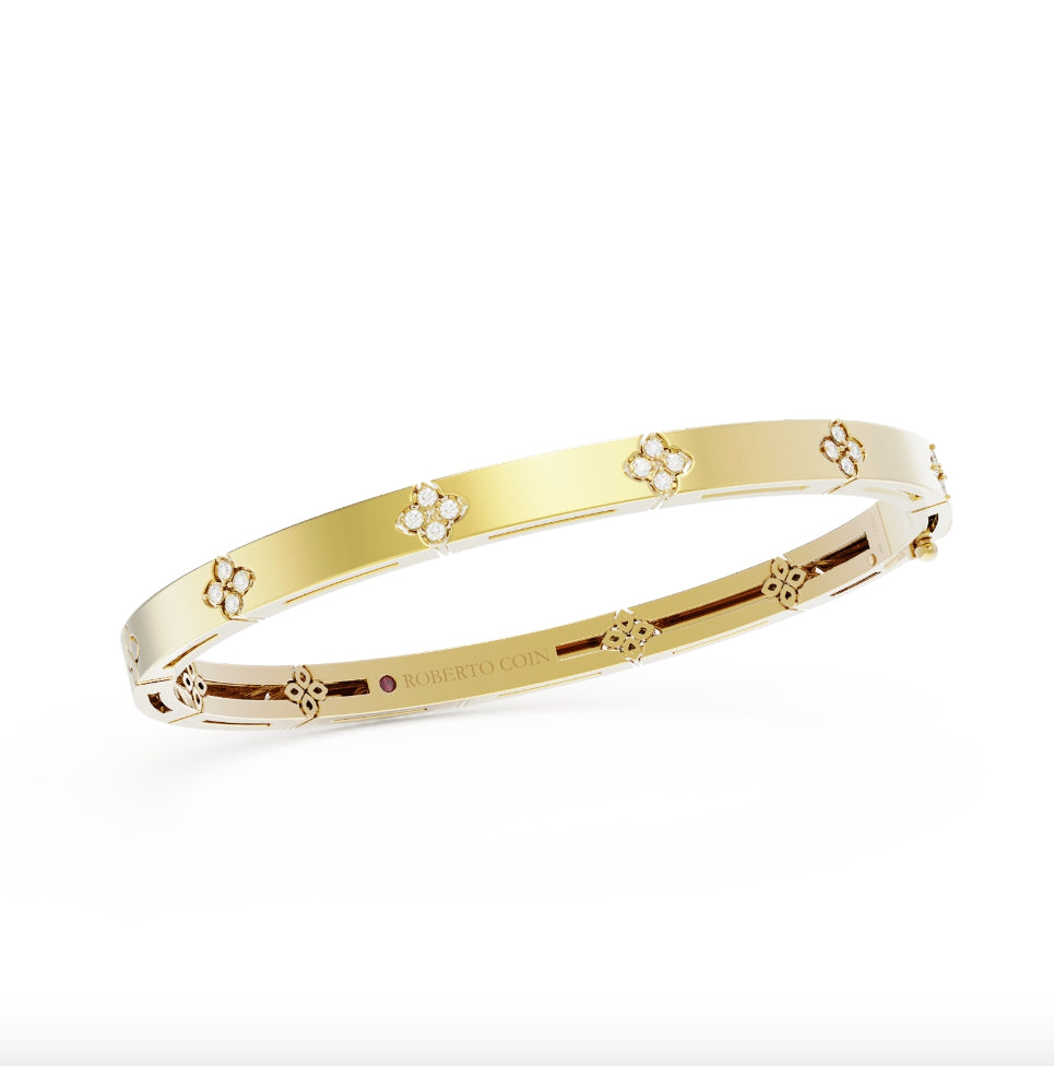 LOVE IN VERONA PAVÉ DIAMOND AND POLISHED FLOWER BANGLE