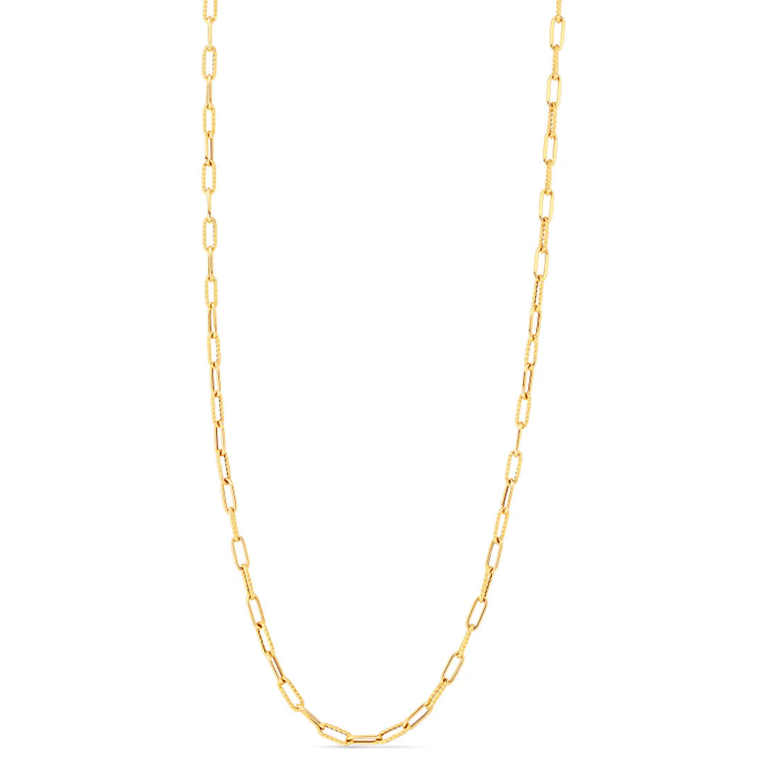 DESIGNER GOLD ALTERNATING POLISHED AND FLUTED PAPERCLIP LINK CHAIN NECKLACE