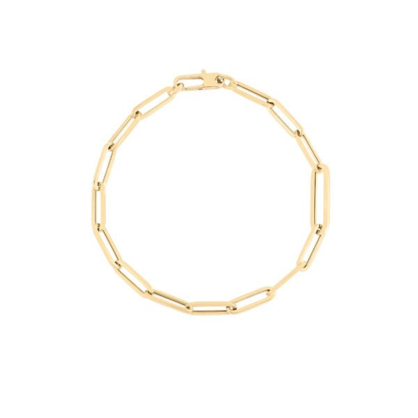 Modern and versatile, this bracelet is crafted in 18K yellow designer gold and features paperclip...