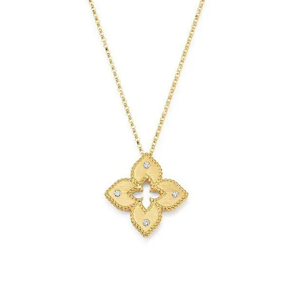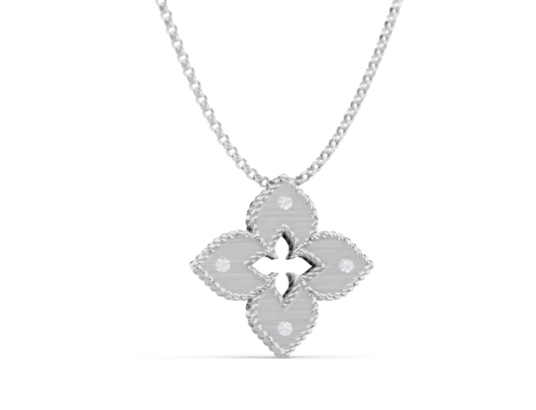 PETITE VENETIAN PRINCESS DIAMOND AND SATIN FINISH MEDIUM FLOWER NECKLACE