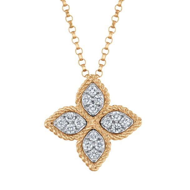 18K Rose Gold Venetian Princess Carnival Flower Pendant Necklace