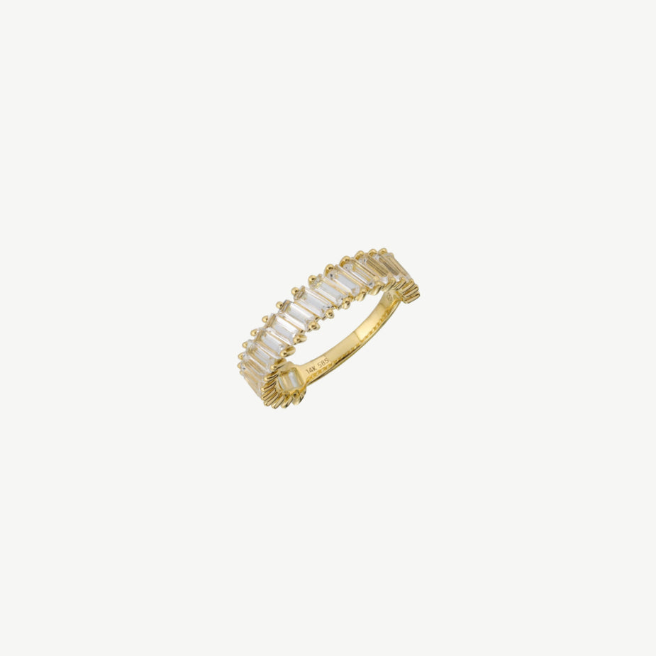 This stunning white topaz ring boasts 20 slanted baguette stones, creating a unique and eye-catching...