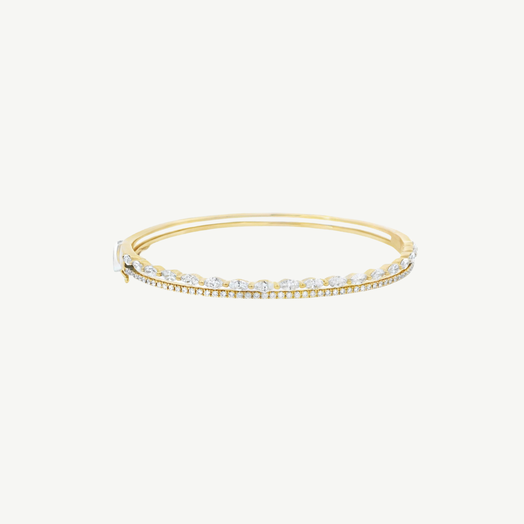 Elevate your style with our 2 Row Diamond Bracelet. Featuring a stunning combination of round and marquee diamonds, this bracelet will add a touch of elegance to any outfit. Sparkle and shine with confidence, and turn heads wherever you go.