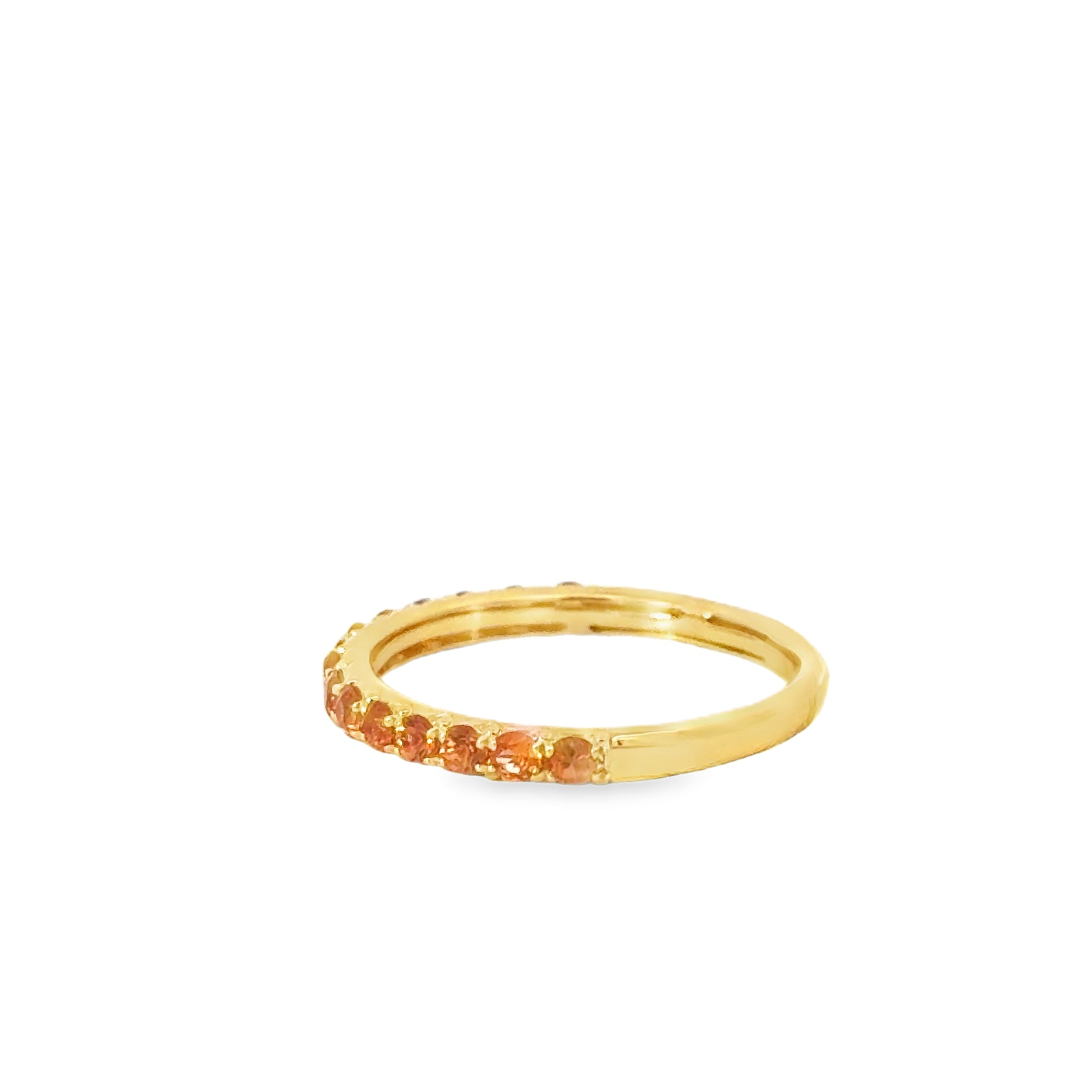 This sparkling 18K yellow gold ring features a vibrant 15-carat citrine centerpiece weighing .65 carats total. Designed as a half-way band, it fits comfortably at size 6.5, adding a pop of sunny color to your finger. Perfect for those who want a playful yet elegant touch in their jewelry collection!