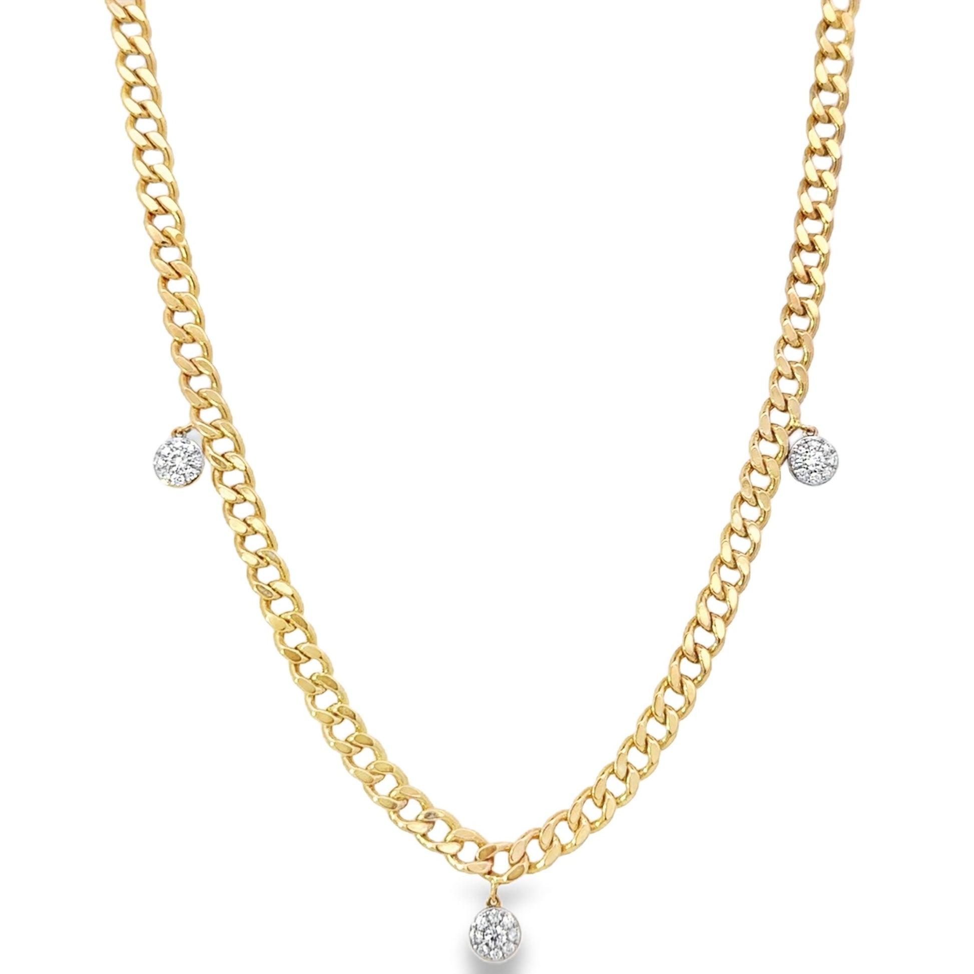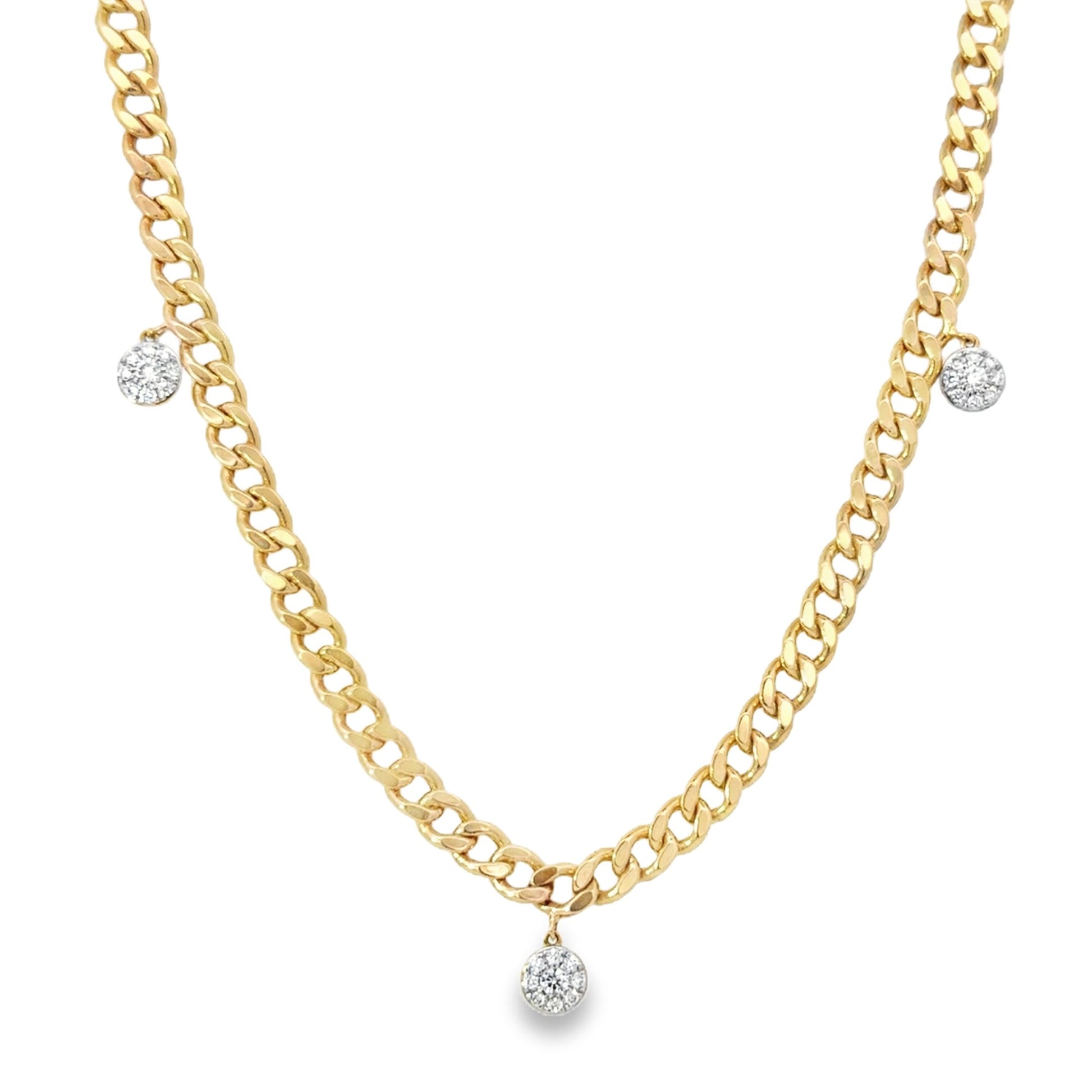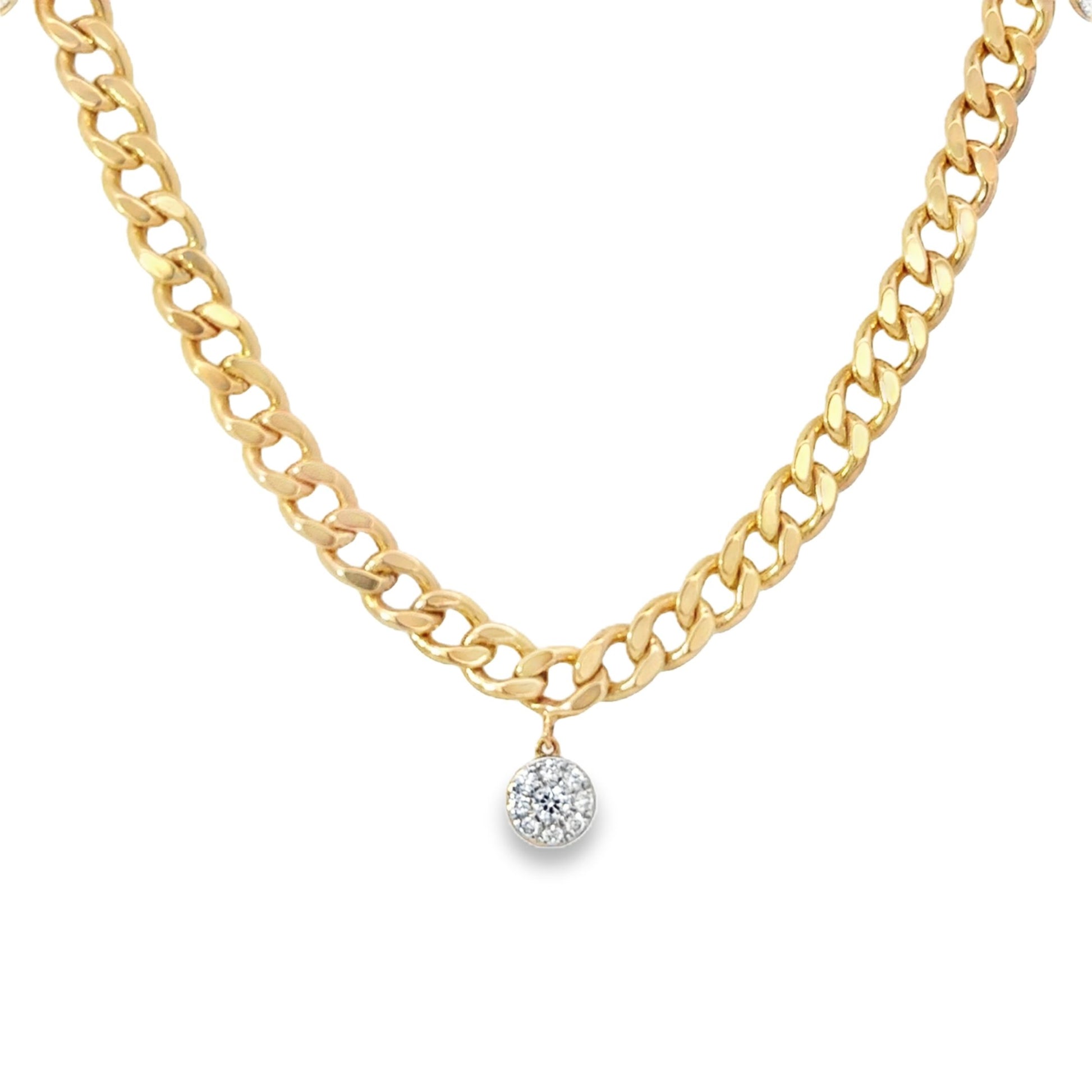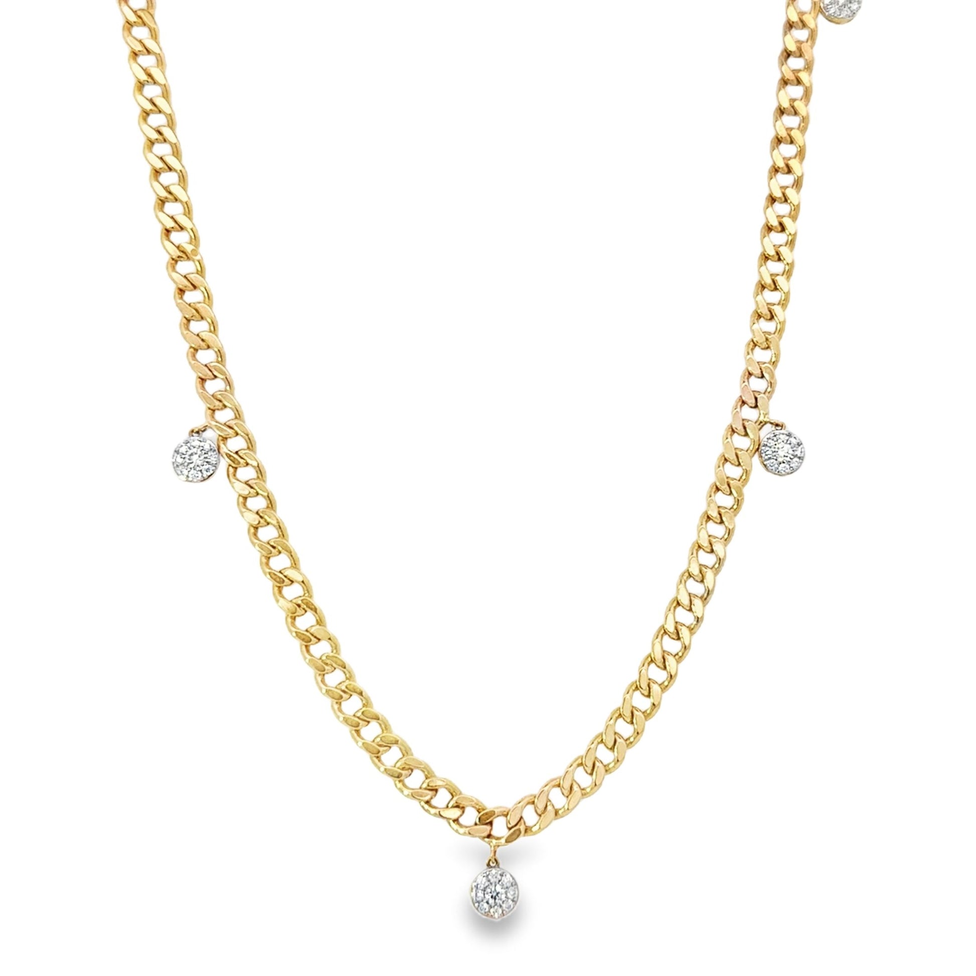 Upgrade your style with our Cluster Bezel Necklace - a must-have for any fashion-forward individual. Made with 14K yellow gold and embellished with five stunning cluster bezels, this 16" curb chain exudes luxury. Elevate any look with 0.63 carats of mesmerizing elegance.