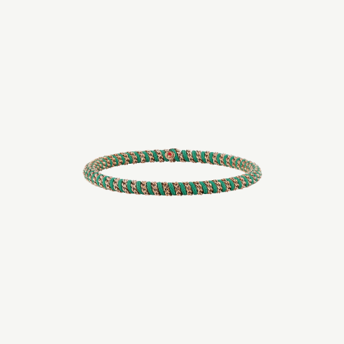 DEMEGLIO - UOMO GIO Green Rope Bracelet with Rose Gold Chain
