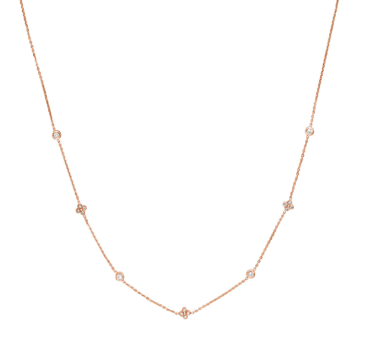 Diamond Bezel and Cluster Stations Necklace