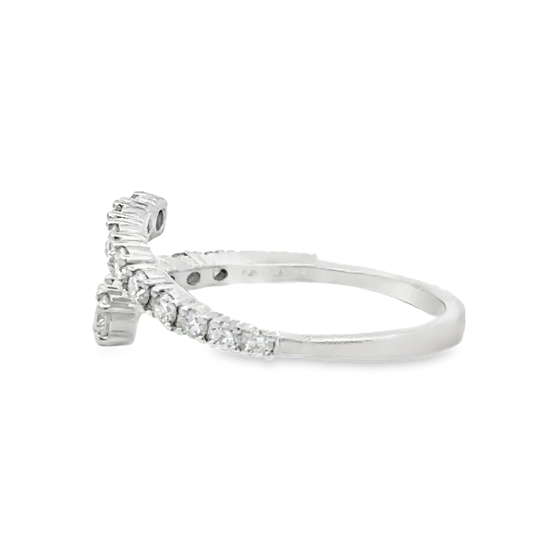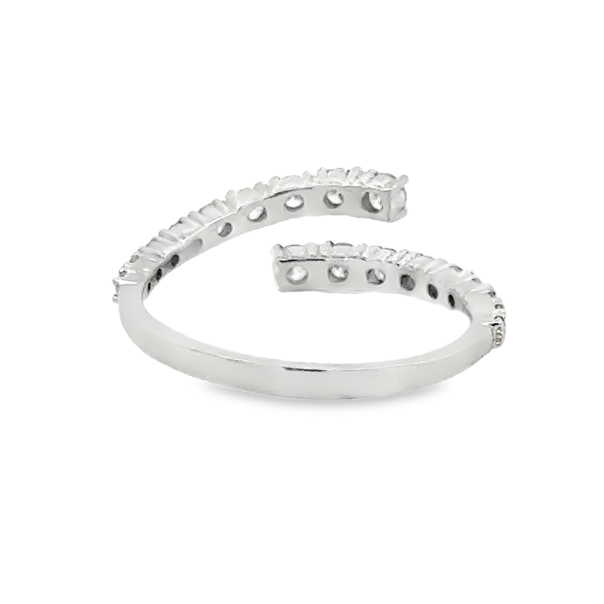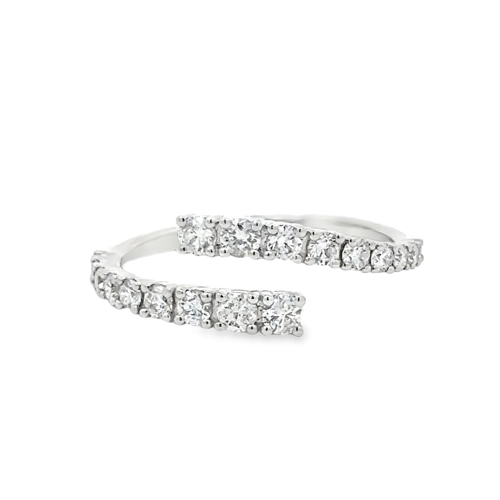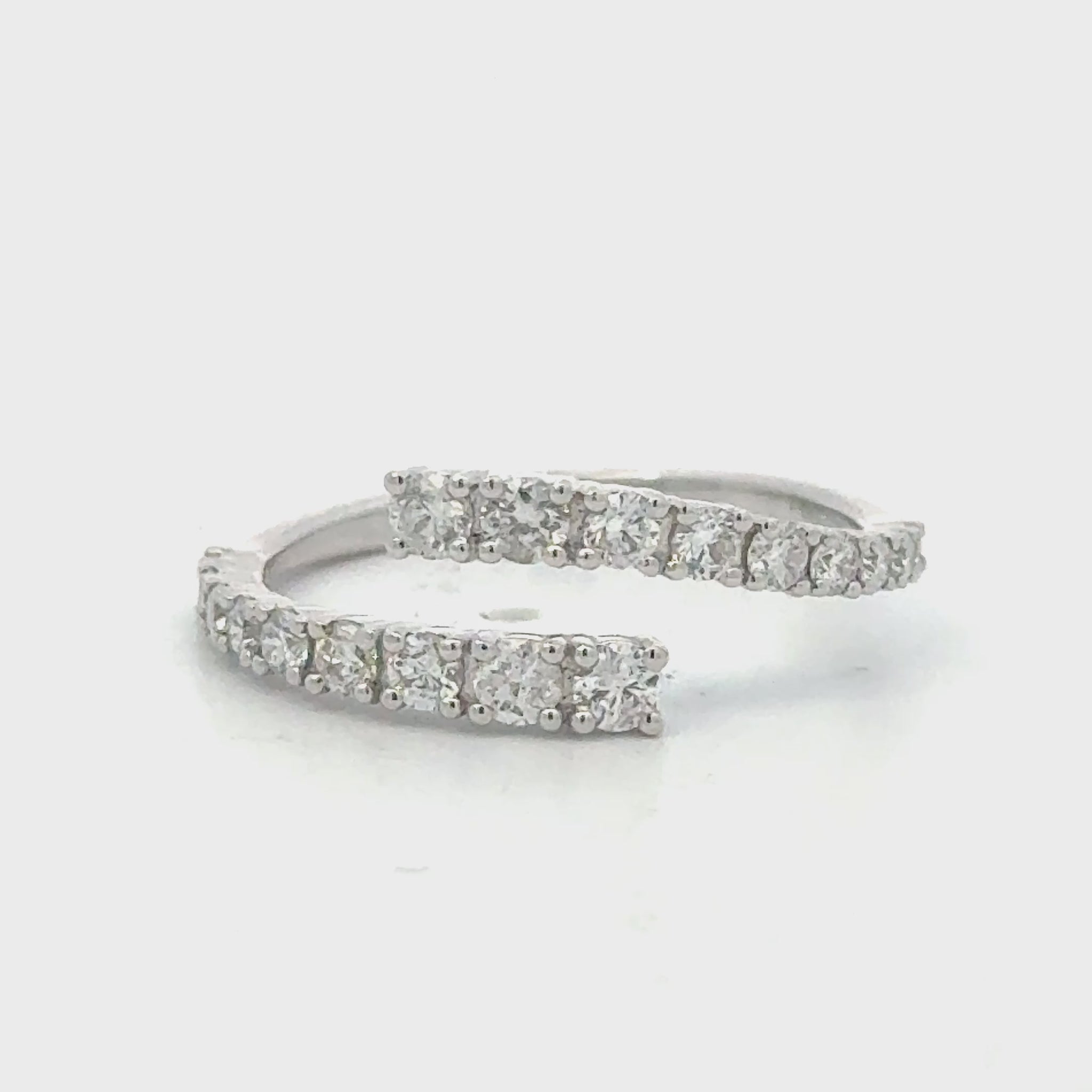 This stunning bypass ring features a brilliant 0.62-carat diamond set in luxurious 18K white gold with a sophisticated half-way design. The secure 4-prong setting cradles your stone with timeless elegance, while the modern bypass silhouette adds an unexpected twist to classic diamond jewelry. Perfect for those who want to make a statement without going over the top—because sometimes the best style moves are the ones that make people do a double-take.