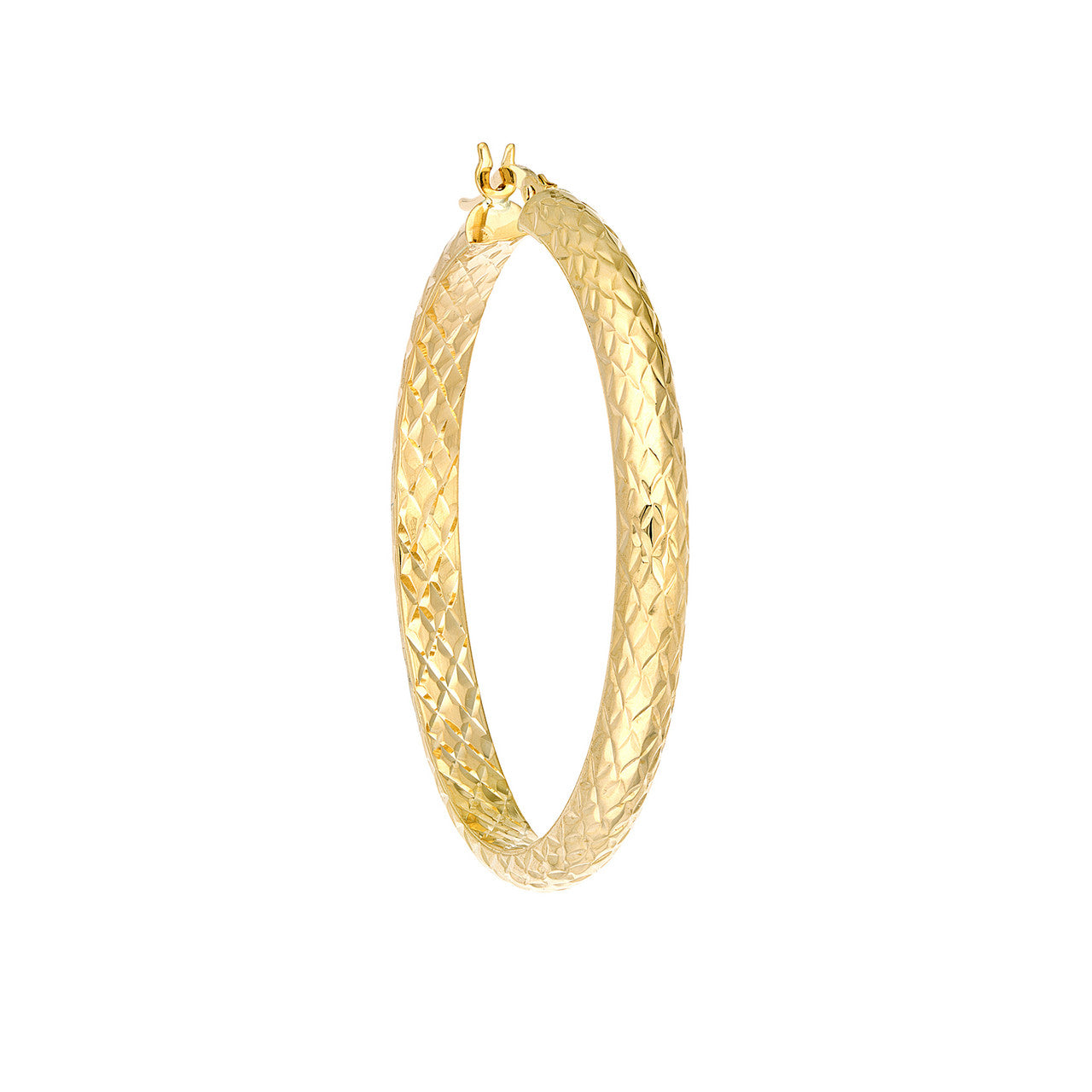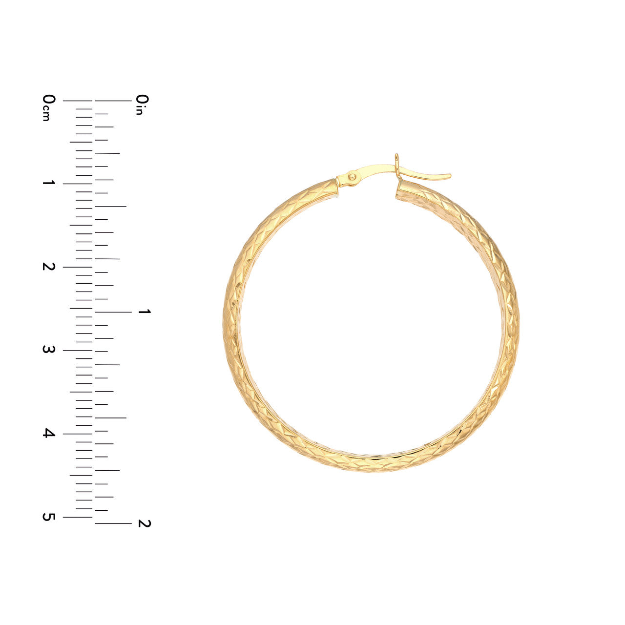 Diamond-cut hoop earrings were made to shine, and these do not disappoint. With diamond-cutting on the inside and outside, this 14K gold hoop will sparkle with every turn.