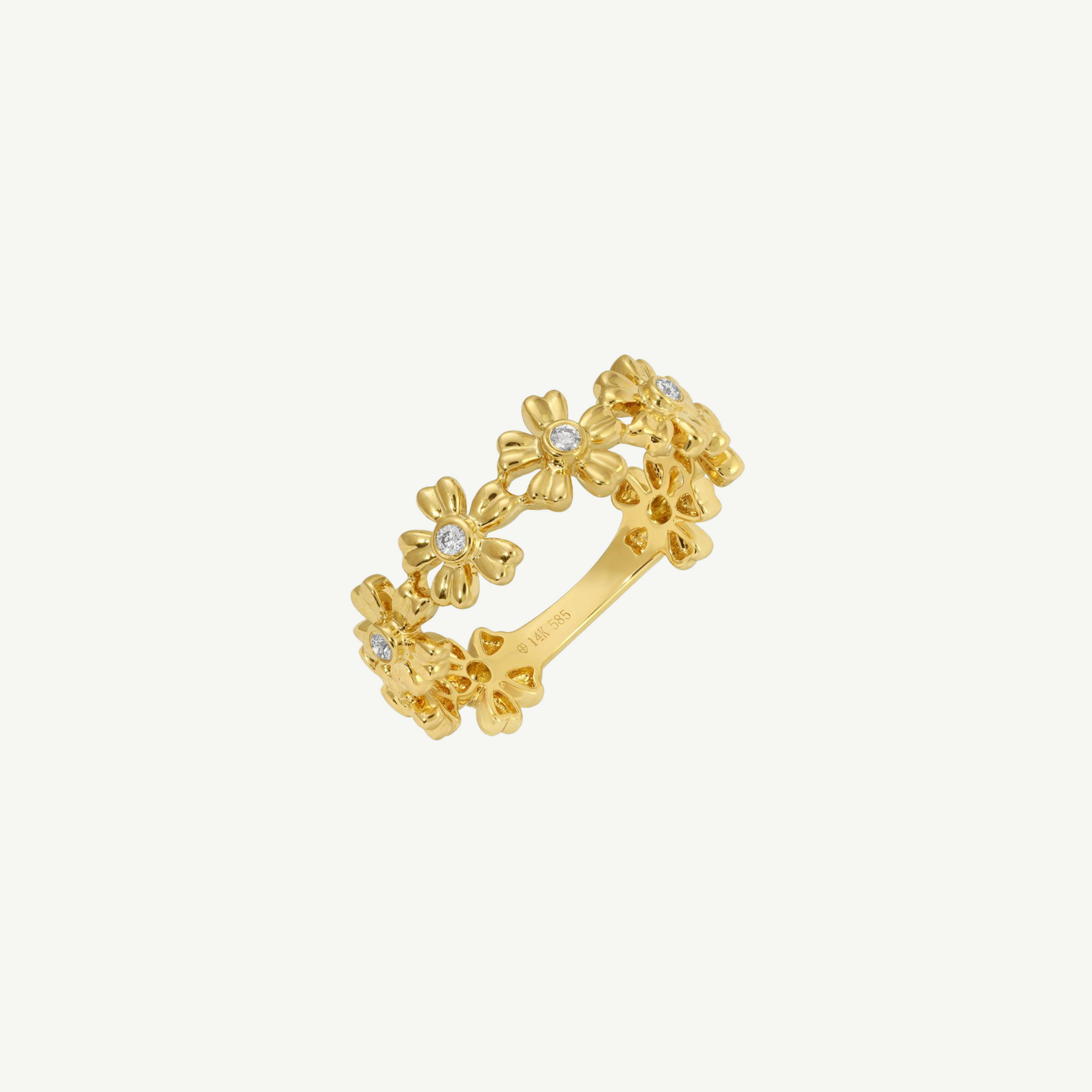 Indulge in the exquisite beauty of our Flower Diamond Ring. Crafted from 14k yellow gold, this ring features a delicate flower design adorned with dazzling diamonds. A symbol of elegance and sophistication, this ring will add a touch of luxury to any outfit.