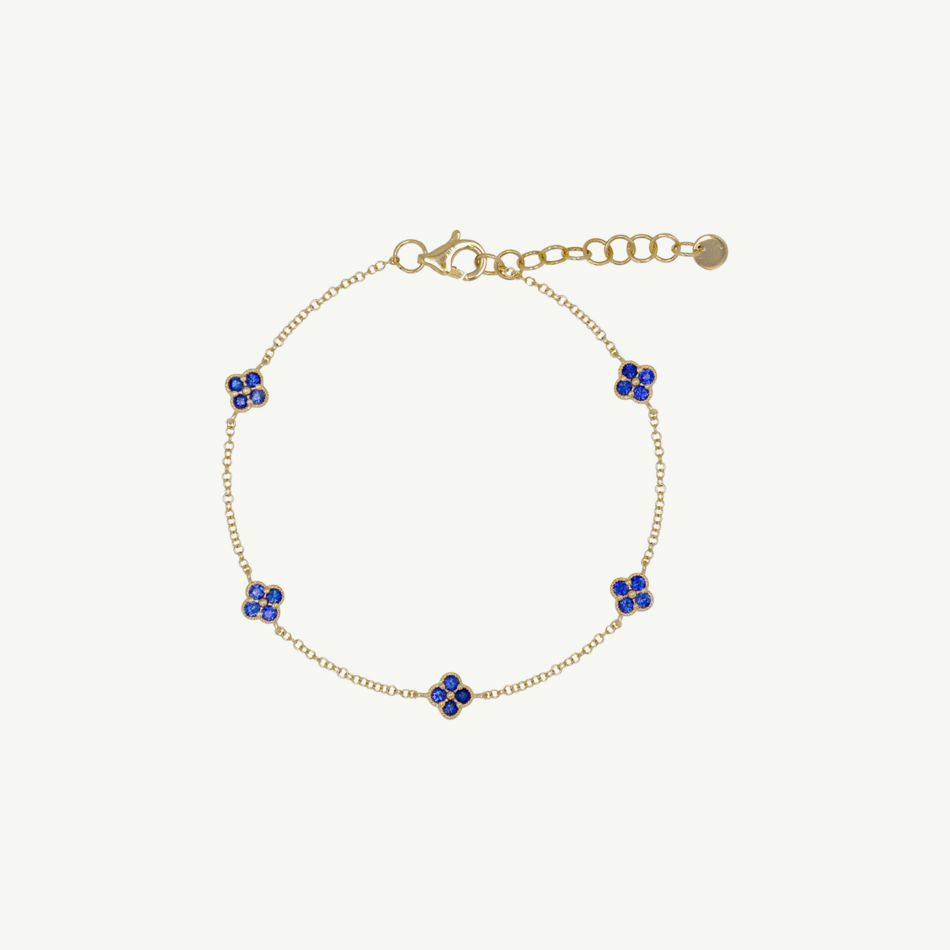 Add a colorful touch of luck to your wrist with our Gemstone Stationed Clovers Bracelet! Choose from sapphires, rubies, or emeralds to create a customized 5-clover bracelet, crafted in 14k gold. Elevate your style with this lucky and luxurious piece.