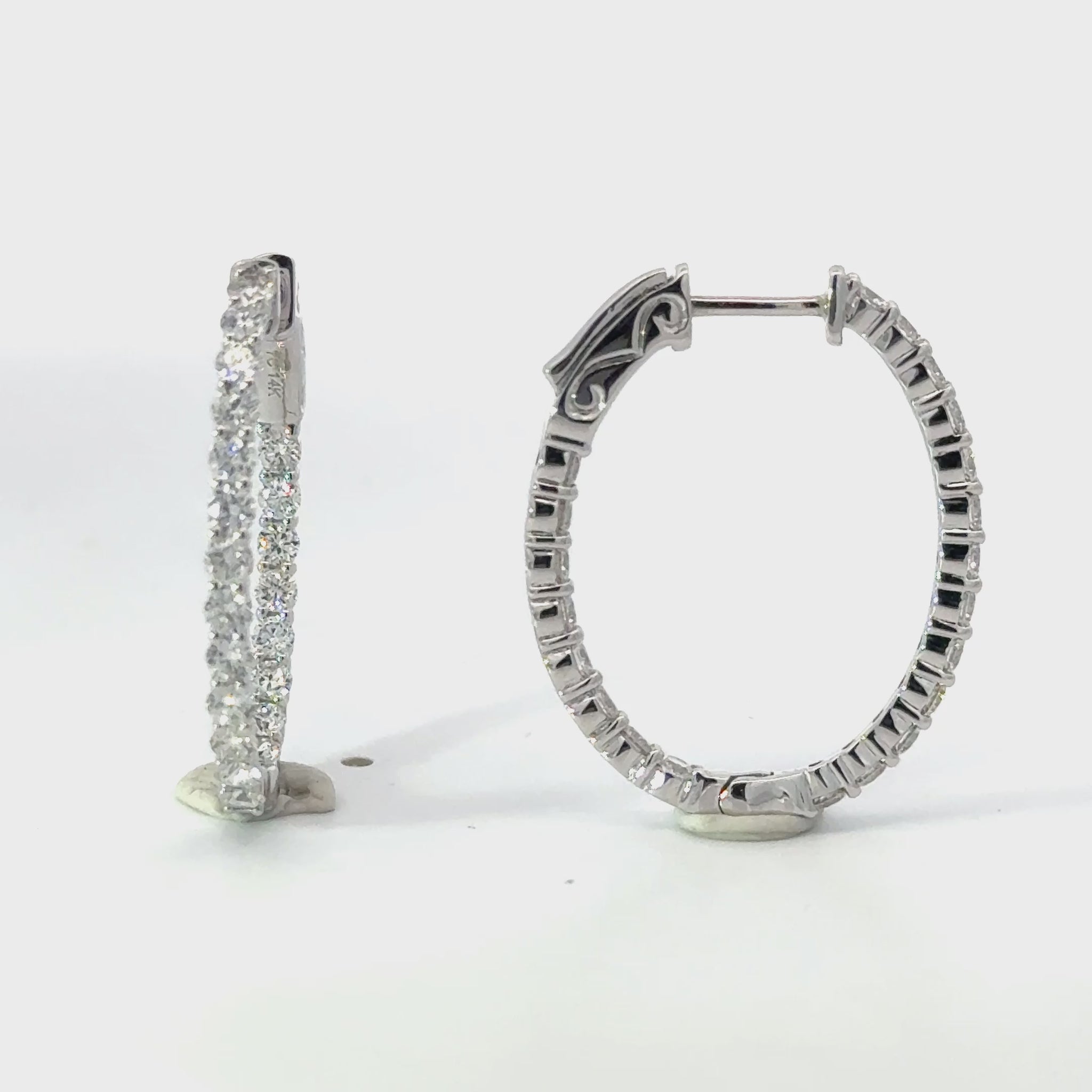 Inside-Out Diamond Oval Hoop Earrings in White Gold