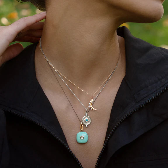 Your daily armor. Our Mini "Protect" Evil Eye Charm is accented with a center turquoise stone and white sapphire accents.