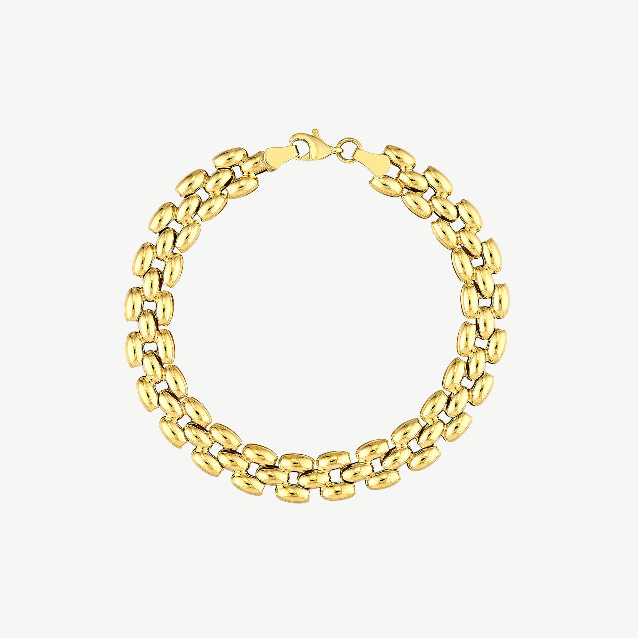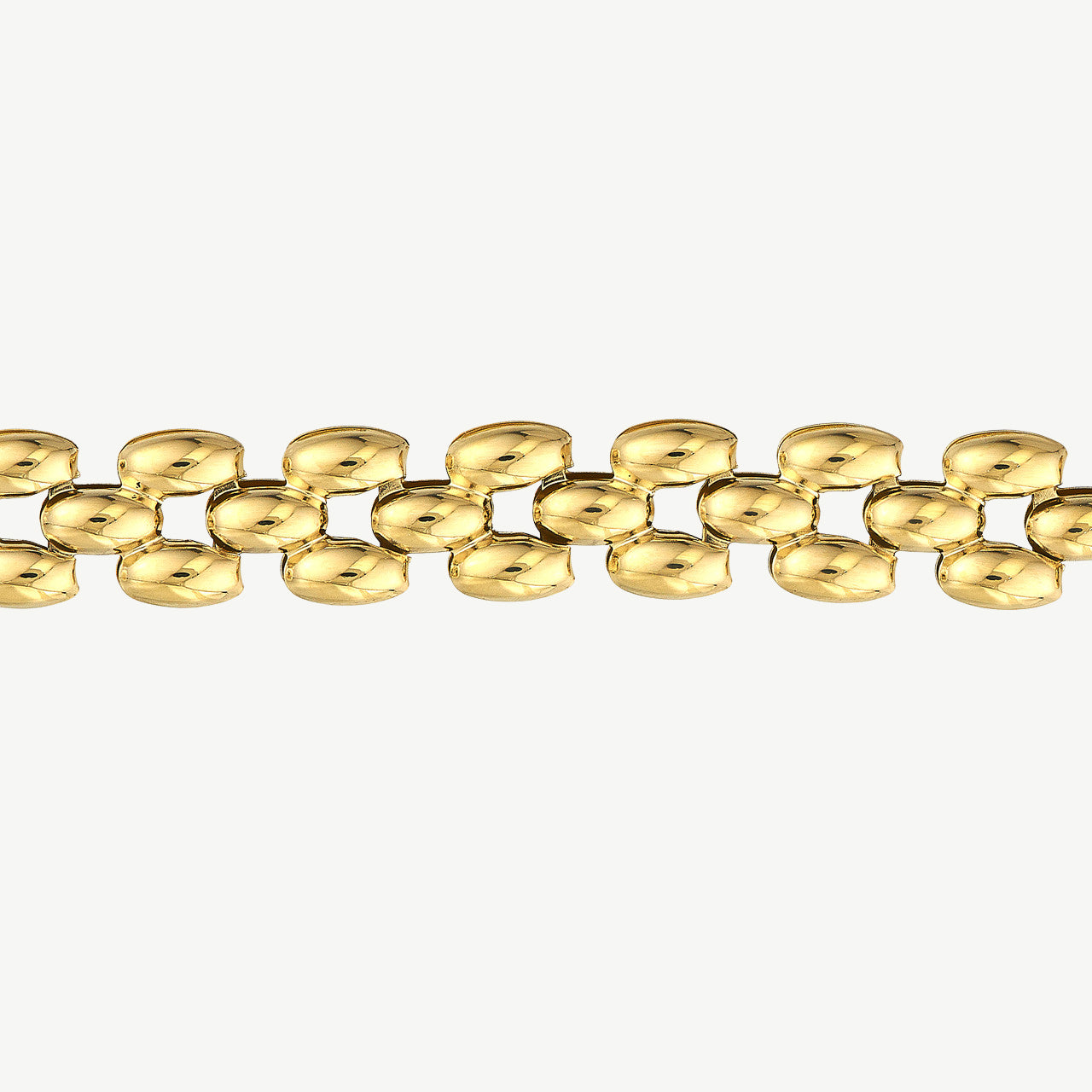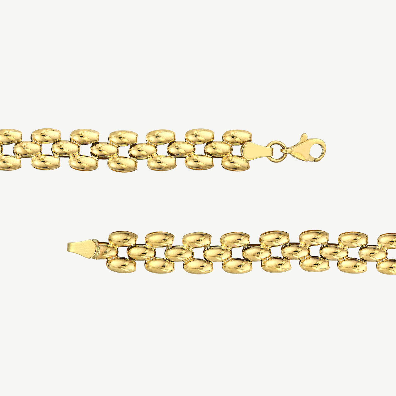 Serve more than just looks. This Multi Row chain is a sight for sore eyes as the stampato technique creates a 3D effect. Crafted in 14K gold, this chain secures with a lobster lock.