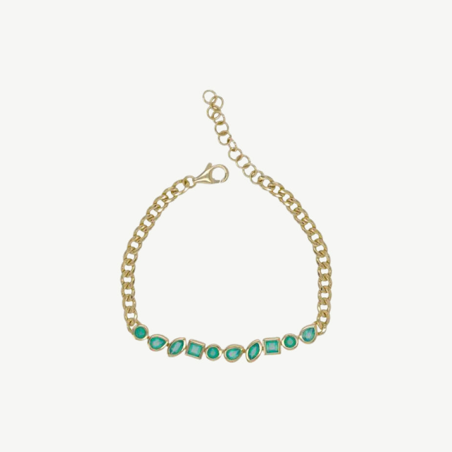 Experience the natural beauty of our Multi-Shape Green Agate Bracelet. Crafted with 10 stunning stones in various shapes, each bracelet is a unique and stylish addition to your outfit. Made with love and 14k yellow gold, this bracelet is sure to add a touch of elegance to any look.