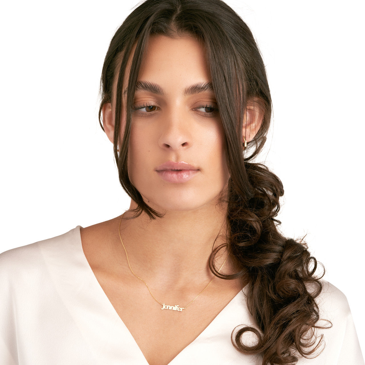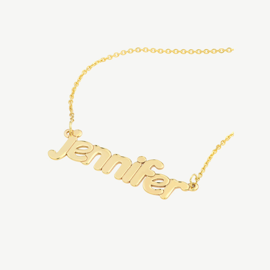 Customize your style with our Nameplate Necklace featuring a unique and eye-catching Bubble Font design. This personalized necklace will add a touch of individuality to any outfit, making it the perfect accessory for those who want to stand out and make a statement. Get yours now and show off your unique personality!