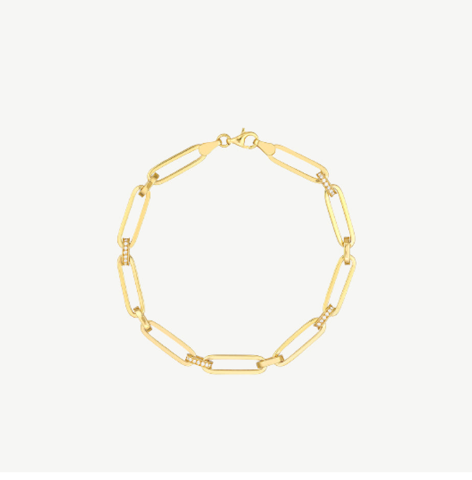 Pave Diamond Accented Paper Clip Chain Bracelet