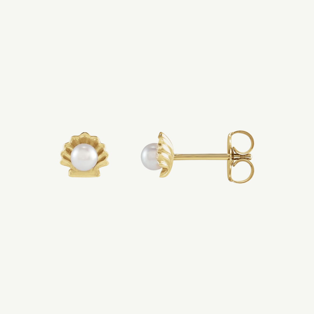 Add some beachy flair to your outfit with our 14K Yellow Cultured White Seed Pearl Shell Earrings. Perfect for any occasion, these earrings feature delicate pearls nestled in a unique shell design.