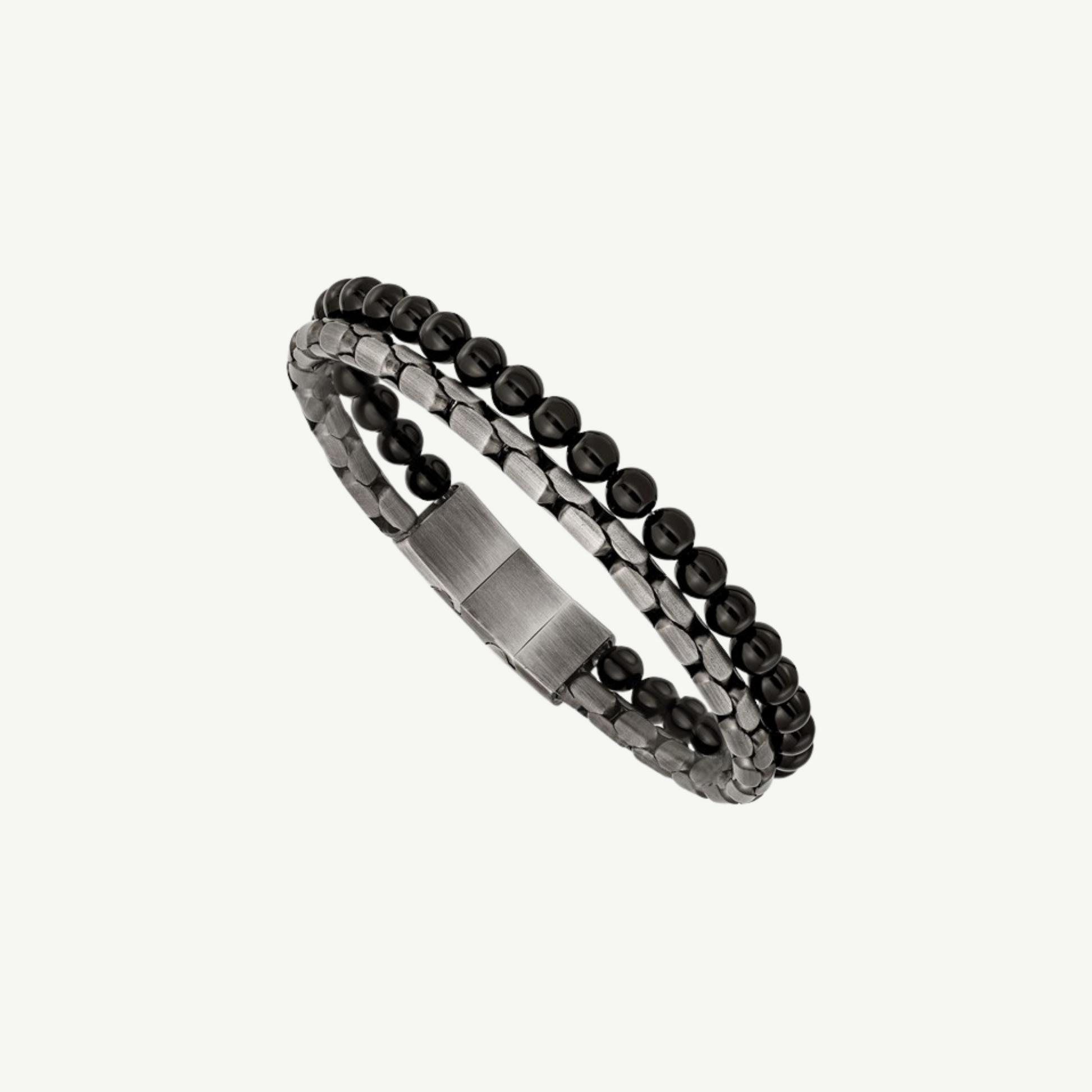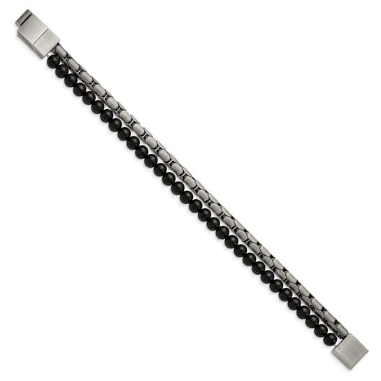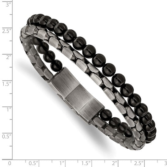 This Chisel bracelet features antique bronze-plated stainless steel beads paired with agate stones, creating a rustic yet refined look. It measures 8.5 inches with a 0.5-inch extension for adjustable comfort. The combination of materials gives it a unique, stylish appeal suitable for casual or formal wear.