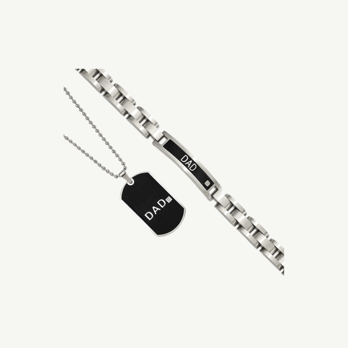 This Chisel set features a brushed black ion-plated stainless steel design, accented with cubic zirconia stones for added sparkle. The 8.75-inch bracelet and 24-inch necklace are perfect for making a bold fashion statement. Ideal for any occasion, this set offers a modern, masculine style with lasting durability.