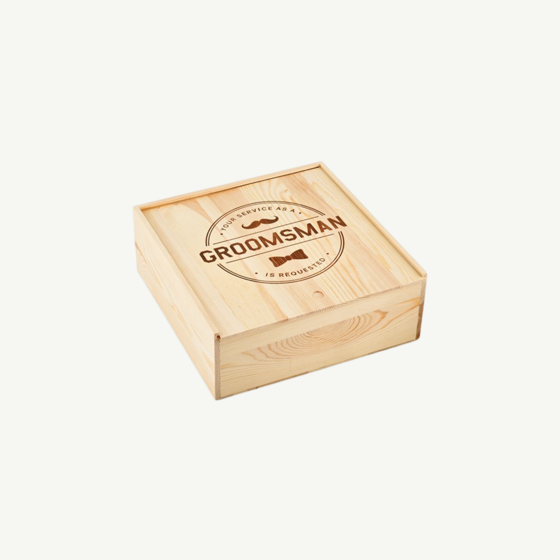 This charming wooden proposal box is the perfect way to ask your closest friends to be a part of your special day. Crafted from high-quality wood, it features a sleek, rustic design with a personalized touch that makes it a memorable keepsake for your groomsmen. Whether filled with small gifts, a heartfelt note, or other tokens, this box adds a personal and thoughtful gesture to your wedding preparations