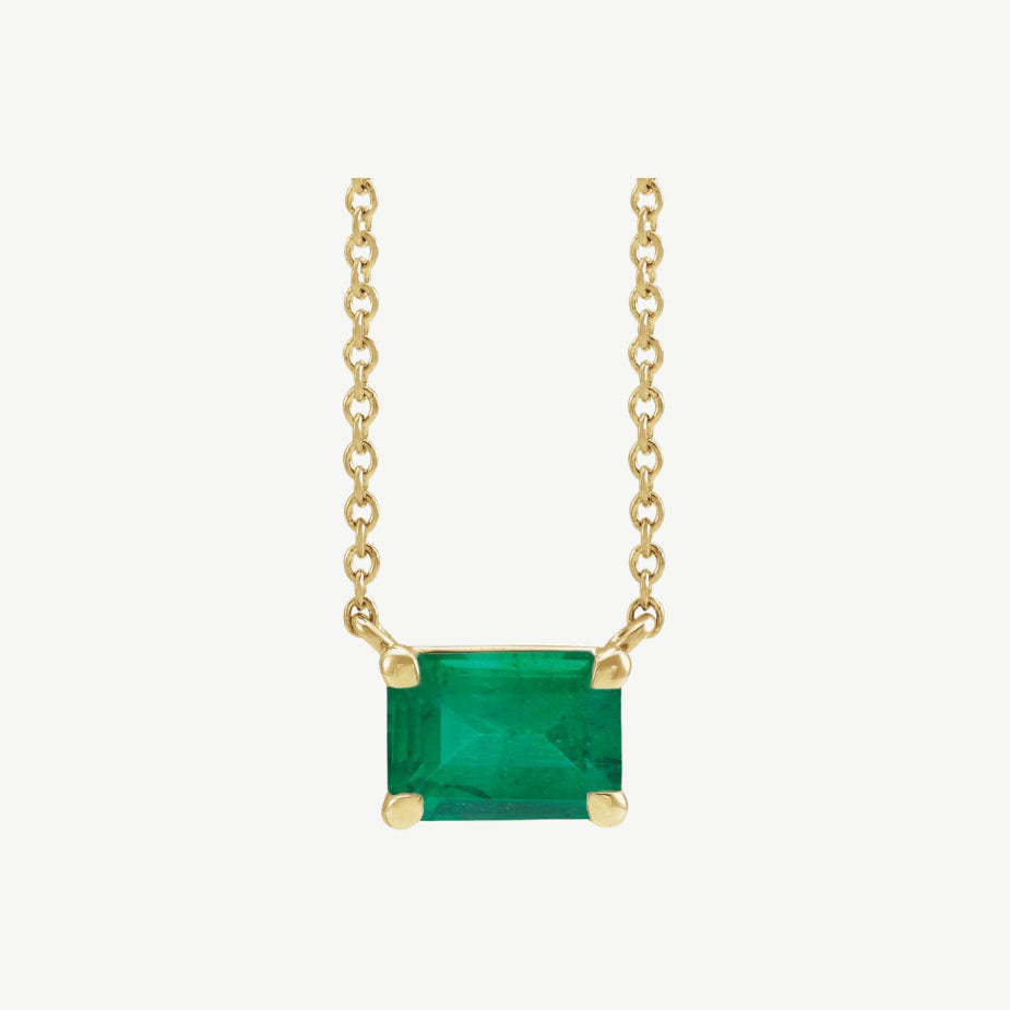 Elevate any outfit with our Rectangular Emerald Pendant Necklace. Crafted with a stunning 5x3mm lab-grown emerald, this necklace exudes luxury and sophistication. The 14K solid gold chain adds a touch of elegance, making it the perfect accessory for any occasion. Available in 18 inches.