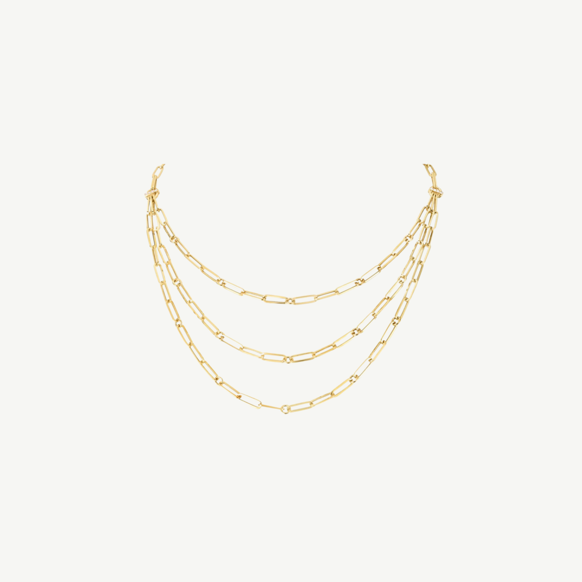 Designer Gold Triple Strand Paperclip Chain & Diamond Necklace
