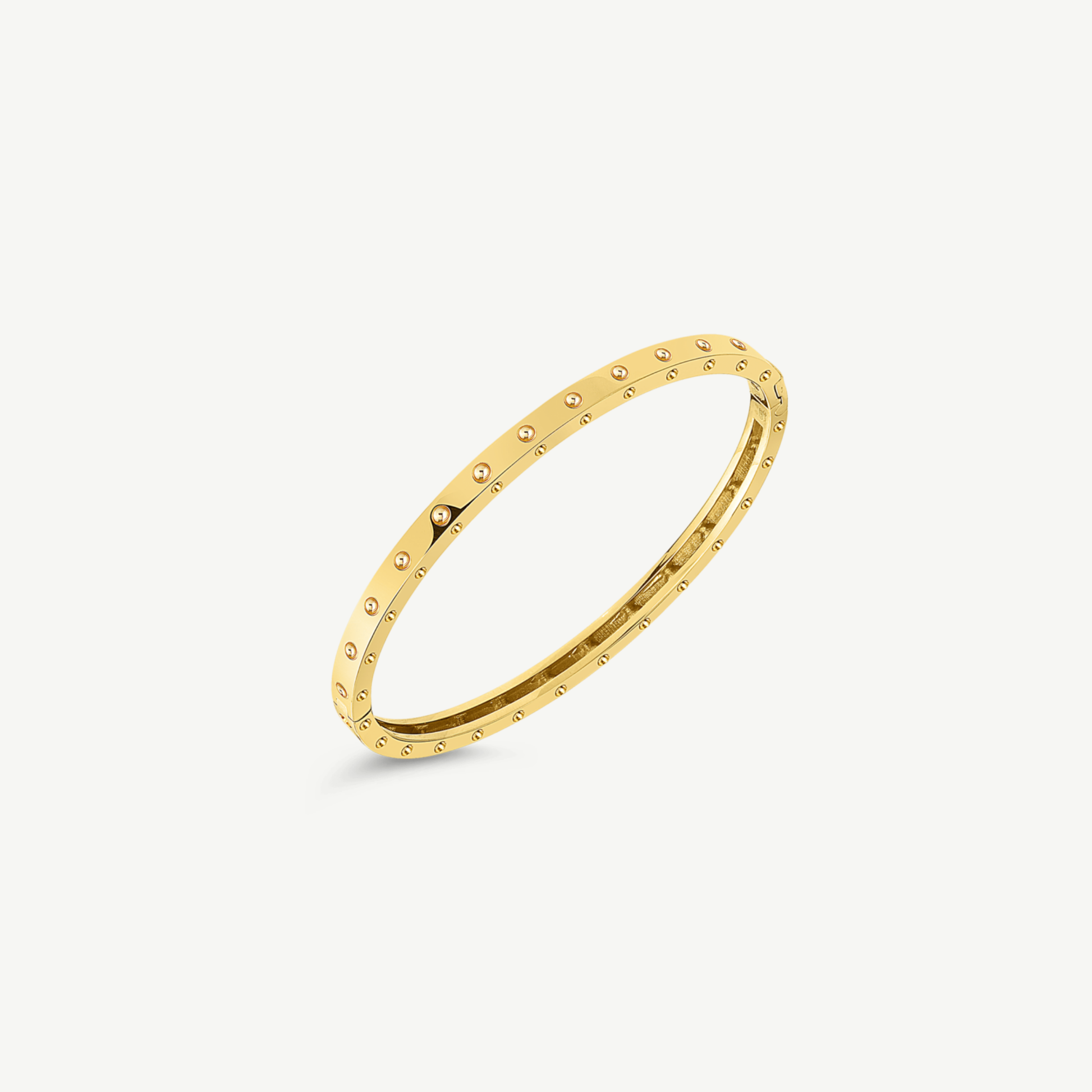 The Pois Moi Oval Bangle by Roberto Coin is a striking piece that elegantly blends contemporary design with timeless sophistication. Featuring a unique oval shape, this bangle is adorned with an array of intricate details that catch the light beautifully, adding a touch of luxury to any outfit. Crafted from high-quality materials, it is perfect for stacking or wearing alone, making it a versatile accessory for both everyday wear and special occasions.