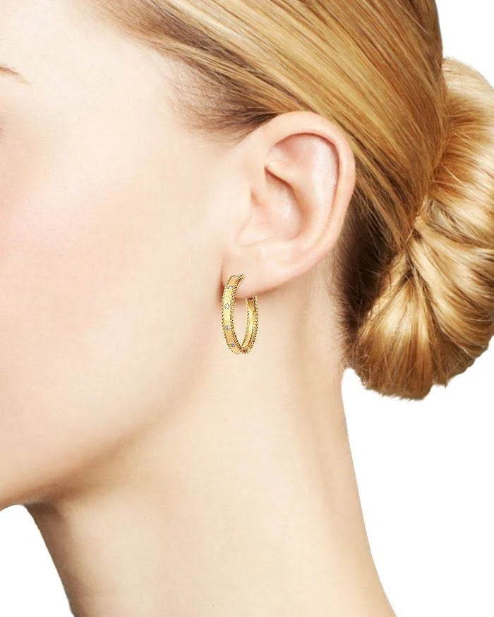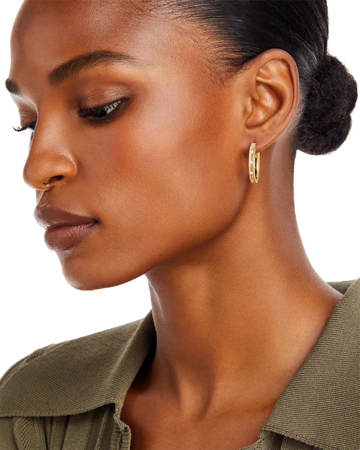 The 18k Gold Princess Earrings by Roberto Coin showcase a stunning design that combines elegance and contemporary flair. Crafted from high-quality 18-karat gold, each earring features a captivating arrangement of brilliant diamonds that add a dazzling touch. These earrings are perfect for elevating any outfit, making them a versatile choice for both everyday wear and special occasions.