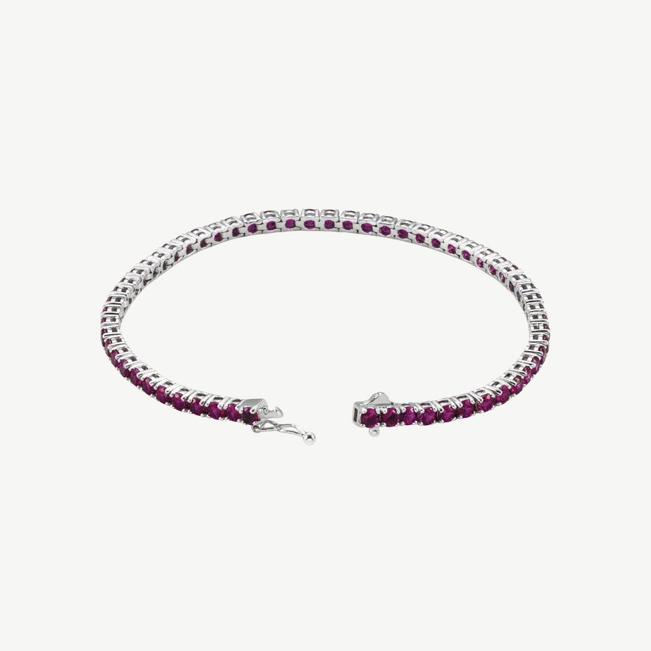 Indulge in the ultimate symbol of sophistication with our Ruby Tennis Bracelet. Crafted with 14k white gold and adorned with 60 stunning 3mm lab grown rubies, this bracelet exudes elegance and luxury. Make a statement and elevate any outfit with this exquisite piece of fine jewelry.